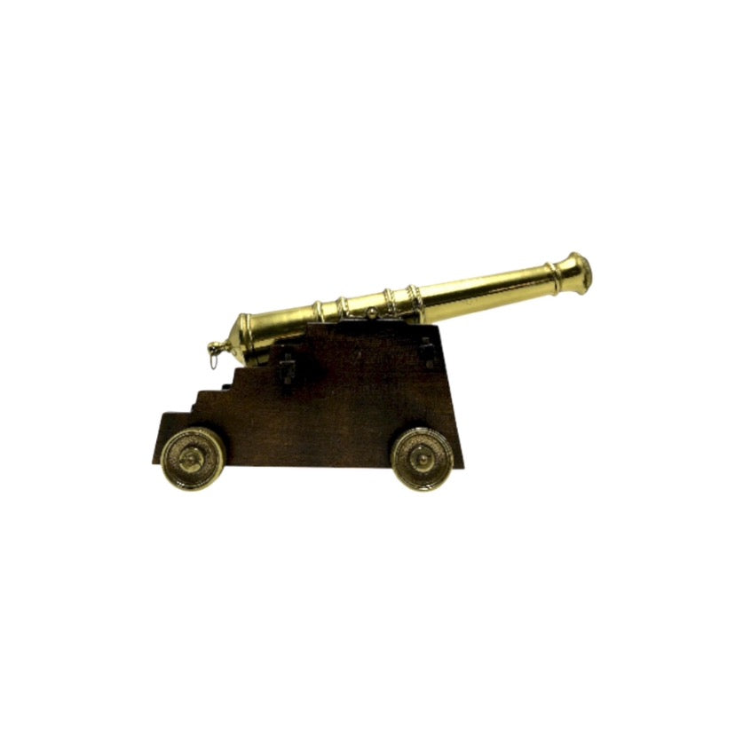 Vintage, mid 20th century, brass signal Cannon with wood base.