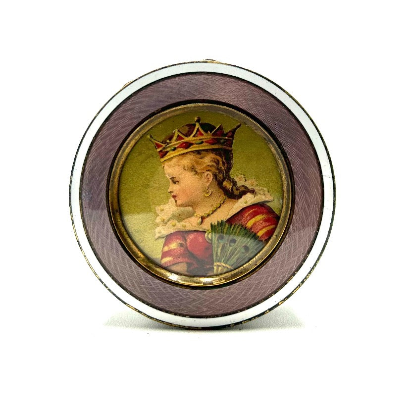 Antique , 19th century , Silvered and enamel French Trinket Box with hand painted Portrait