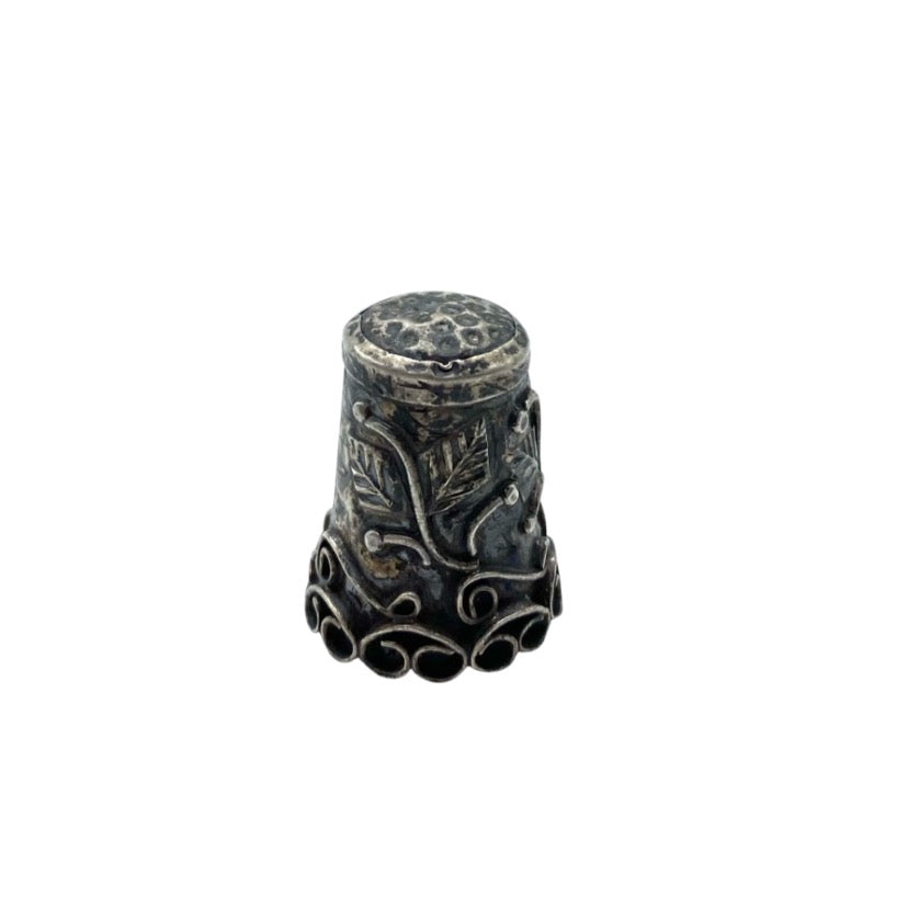 Antique, art nouveau, sterling Mexican silver thimble. Highly detailed with Handmade punches design and applied vines