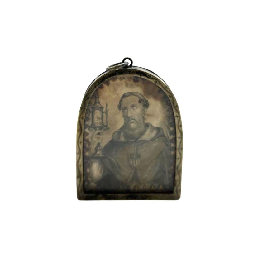 Pewter Medal Encasing a Relic of Saint Peregrine.