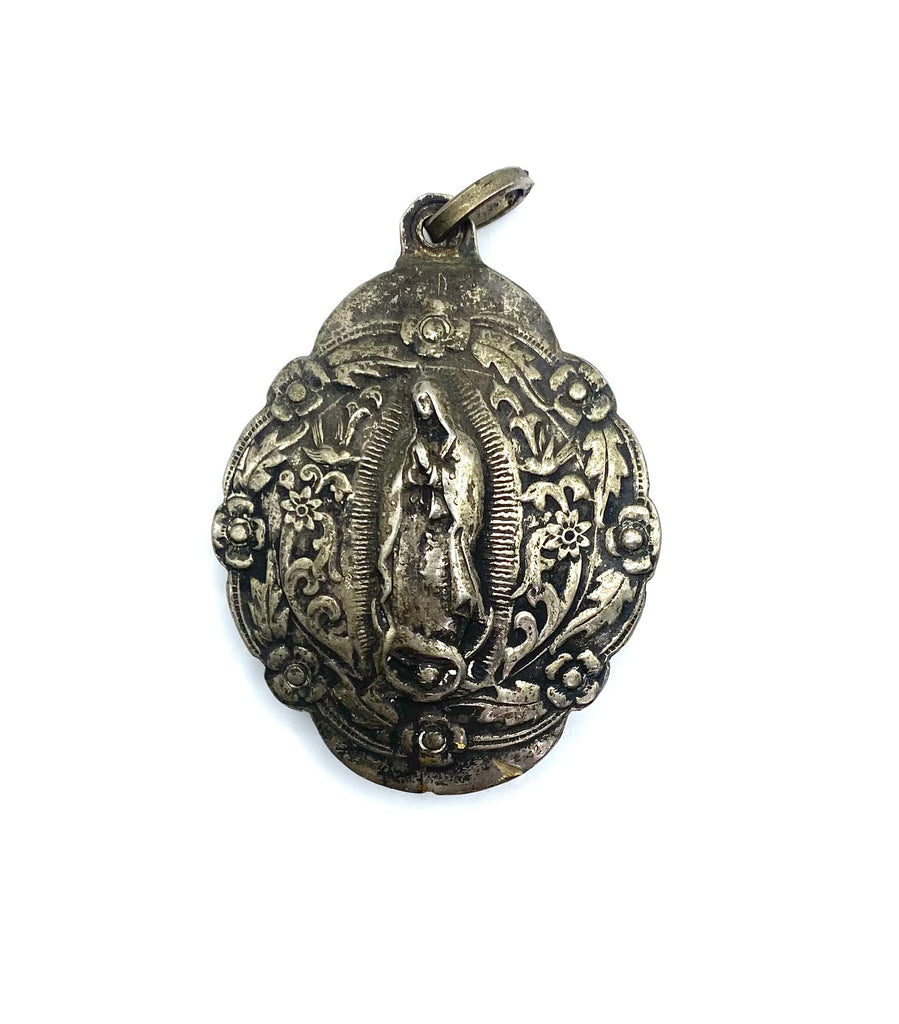 Antique, silvered pendant, Virgin Mary Guadalupe.