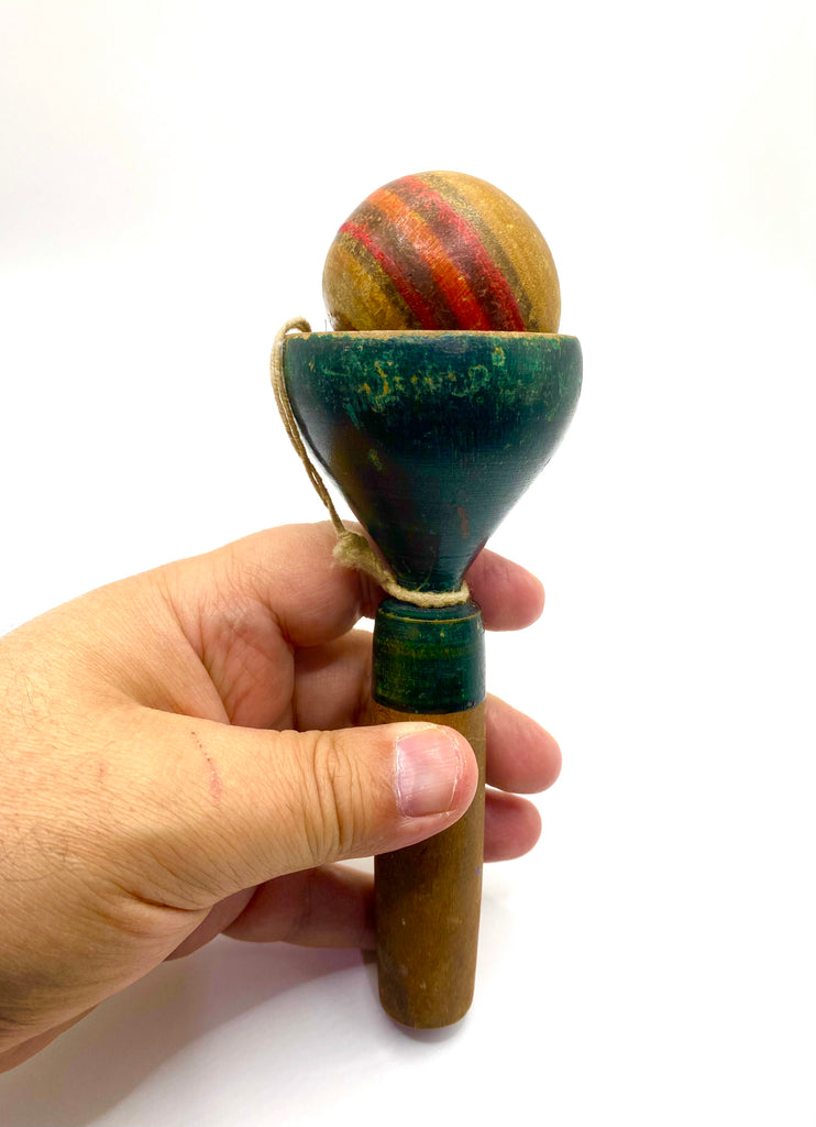 Antique wood “Bolero” with metal spikes - Cup-and-ball toy