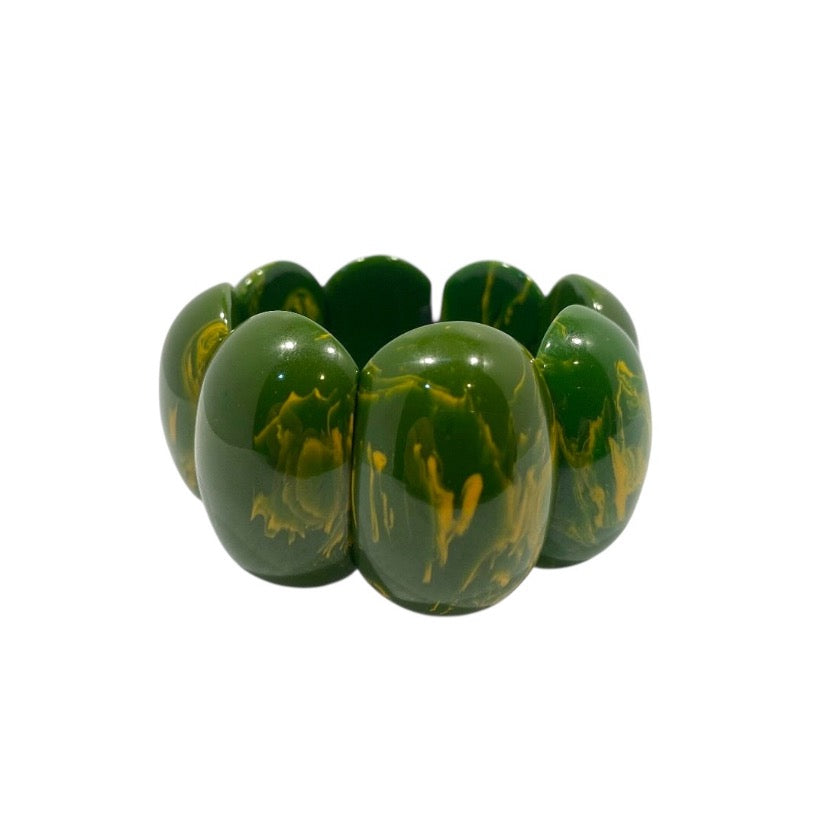 Beautiful, vintage, marbled green and yellow , Bakelite Stretch Bracelet