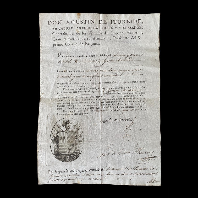 Antique, original document dated February 9, 1822 signed by Agustin de Iturbide.