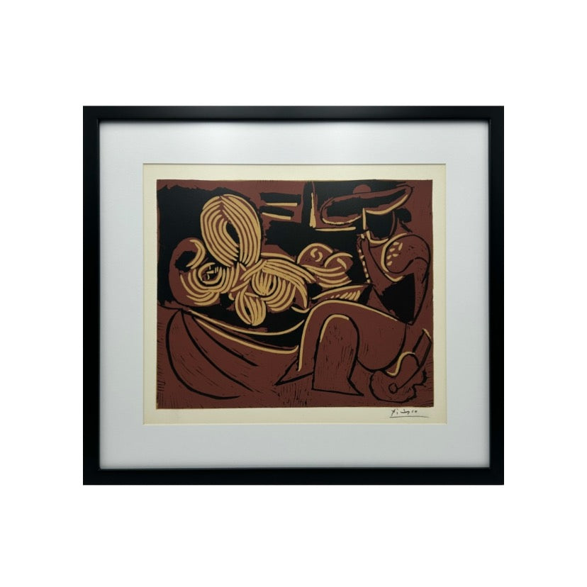 Pablo Picasso , Original linocut “ Reclining Woman and Picador Eating Grapes“ 1962 , Printed en France by Cercle D’Art .