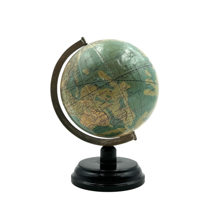 Antique terrestrial globe with aluminum half meridian Marked with an eagle on a globe