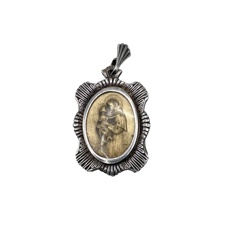 Silver medallion Saint Antonio of Padua. Inside relics.