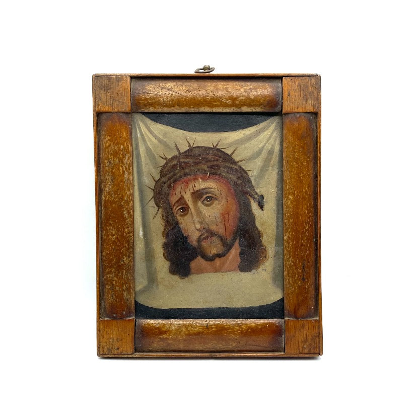 Antique altarpiece of the Veil of Veronica painted on zinc.