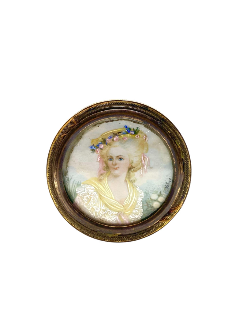 Antique , 19th century , French Trinket Box Miniature Portrait of Marie-Antoinette .