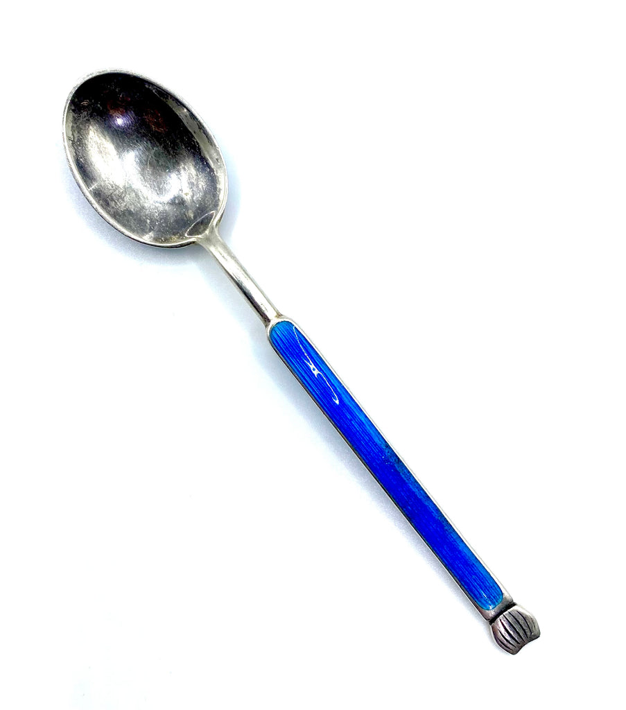 David Andersen Norway Sterling Guilloché Blue Enamel Demitasse Spoon