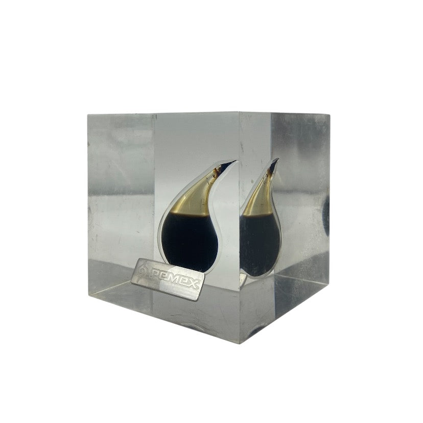 1980s Mexico, oil drop in acrylic cube “ PEMEX “