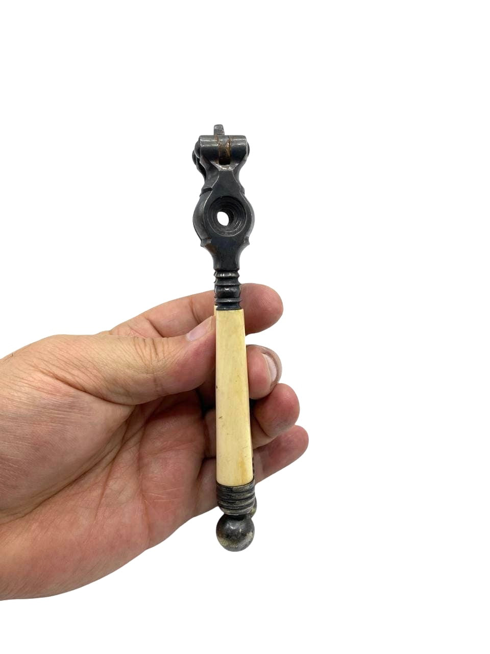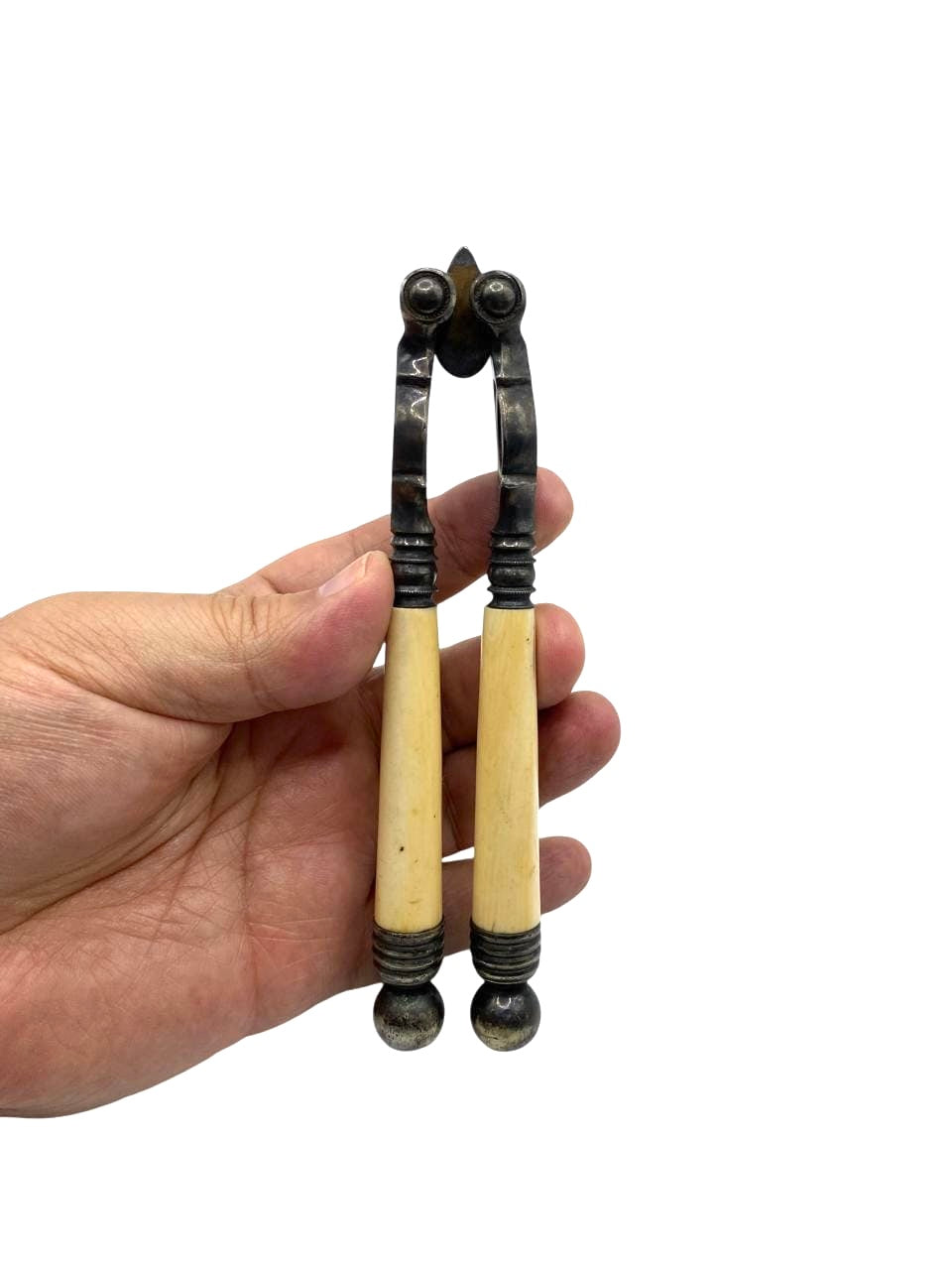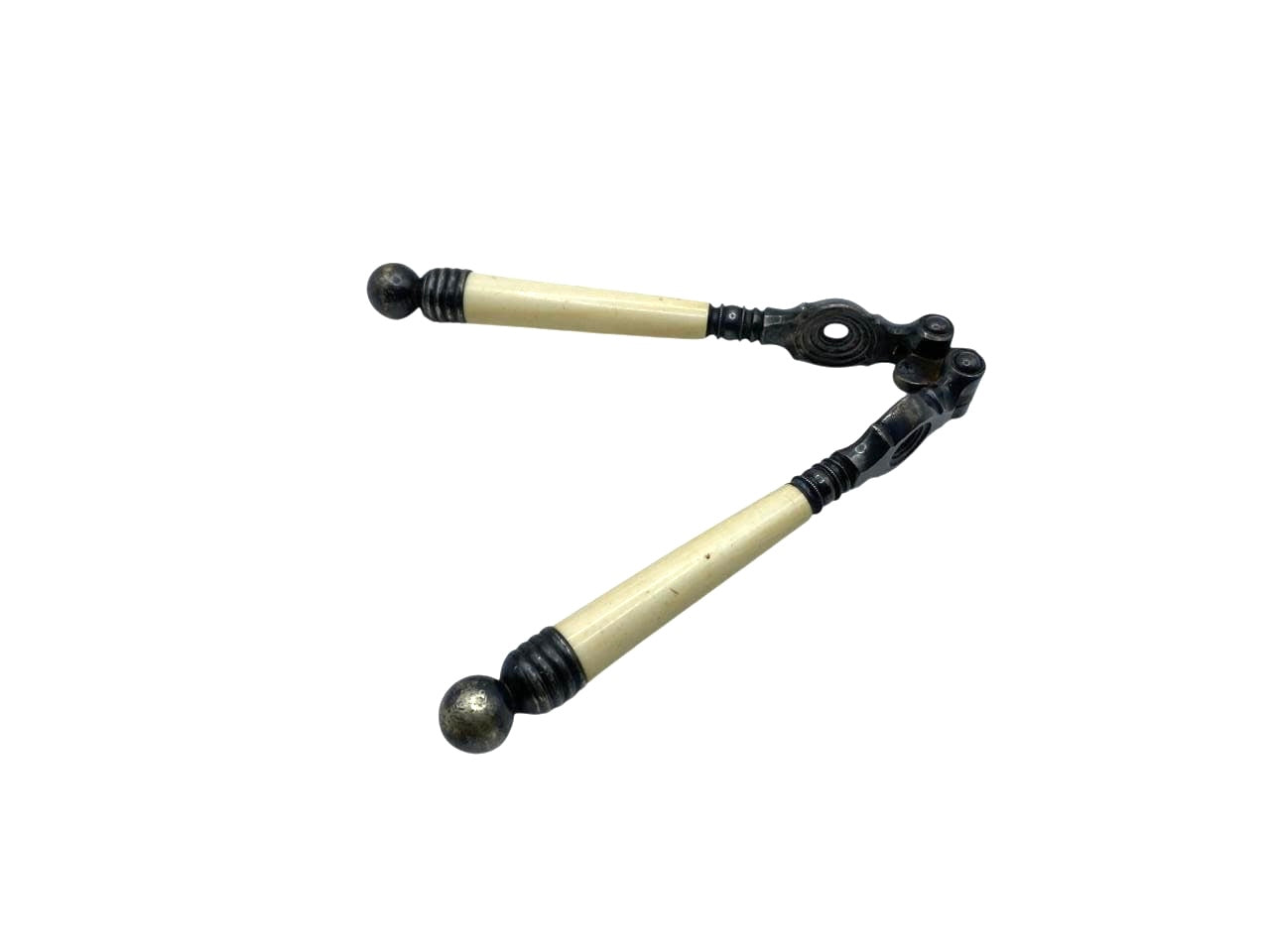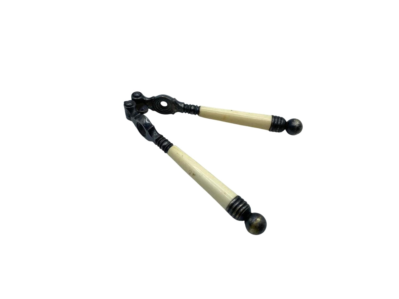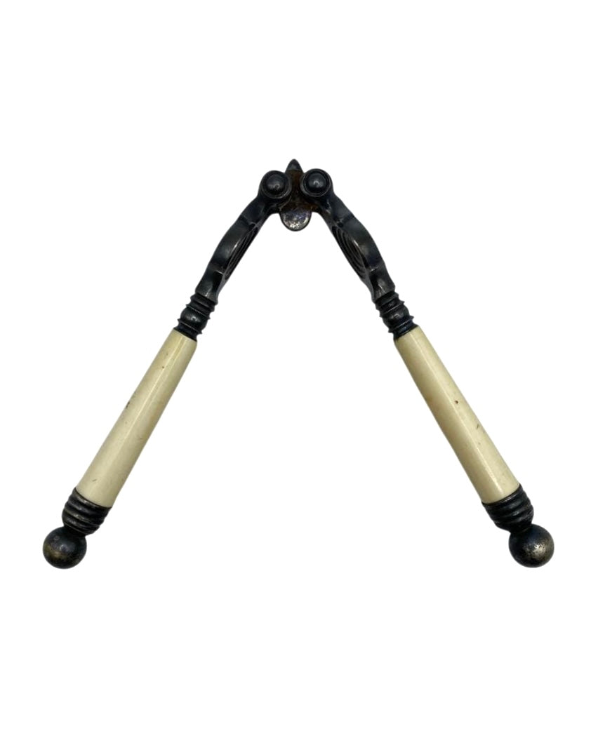 19th Century English Carved Ivory and Silver Plate Nutcracker. Unmarked