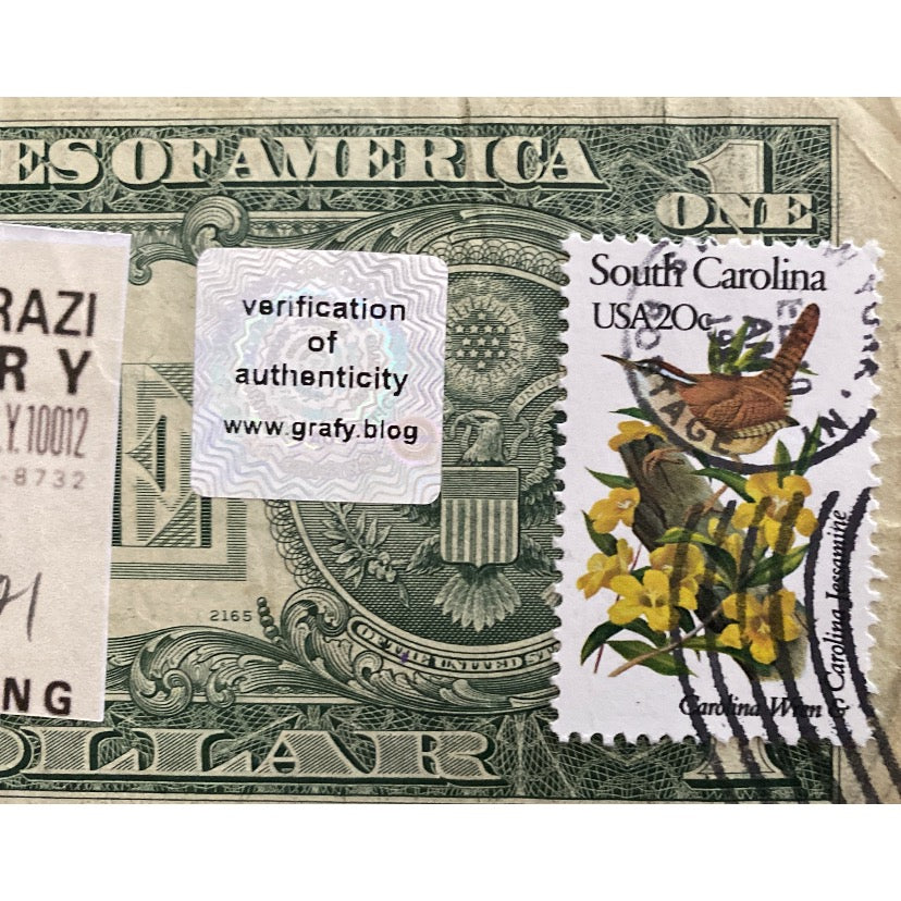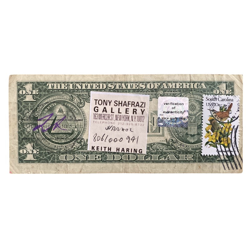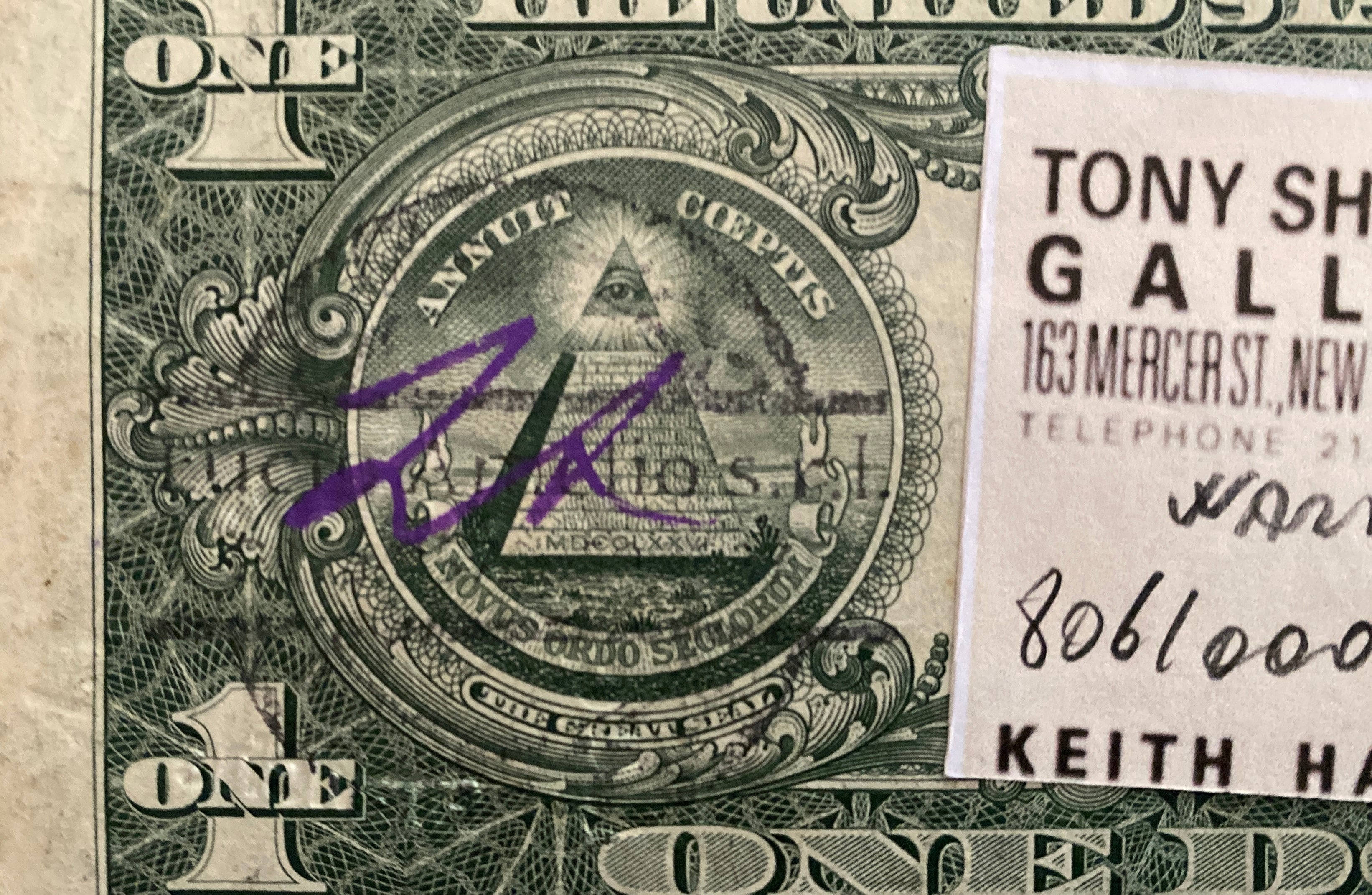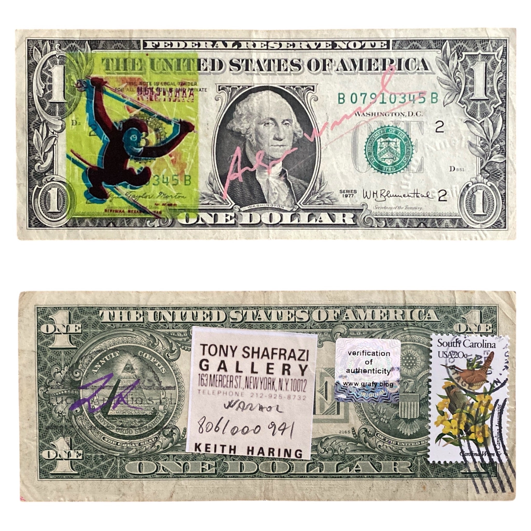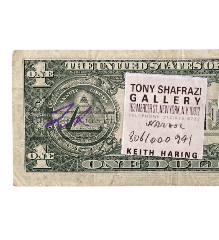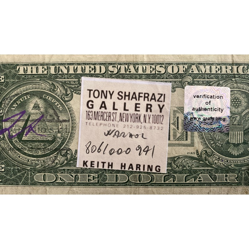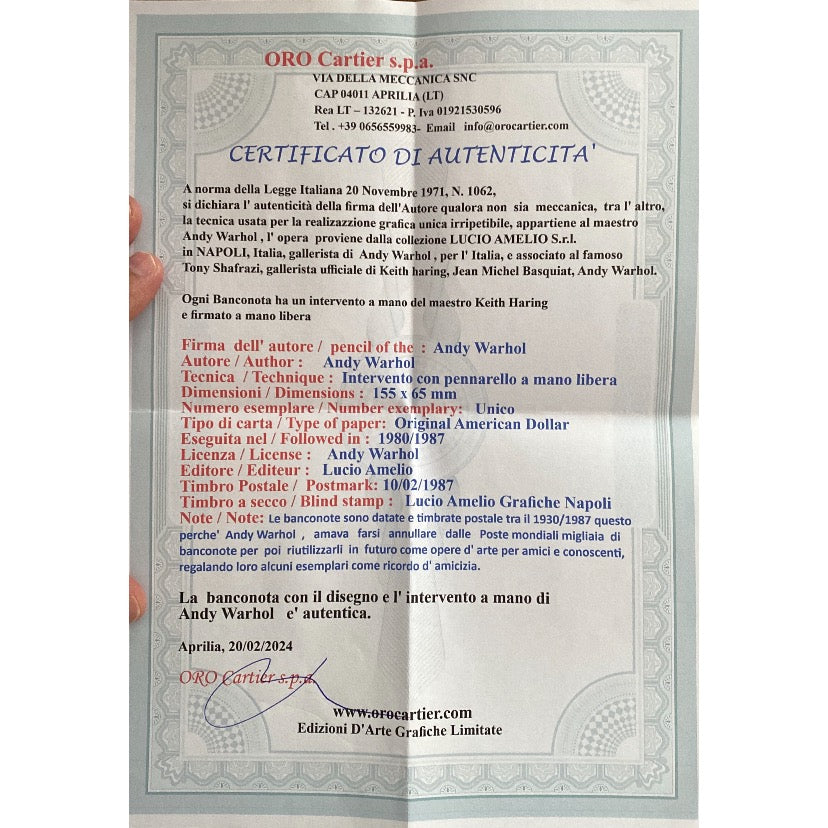 Andy Warhol , 1 US dollar, hand signed by Andy Warhol With the seal and signature of Tony Shafrazy Gallery and the authenticity seal of Grafy.