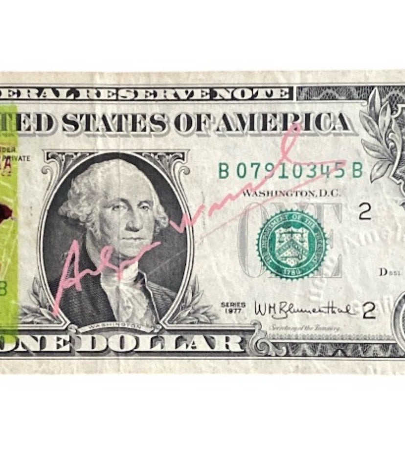 Andy Warhol , 1 US dollar, hand signed by Andy Warhol.