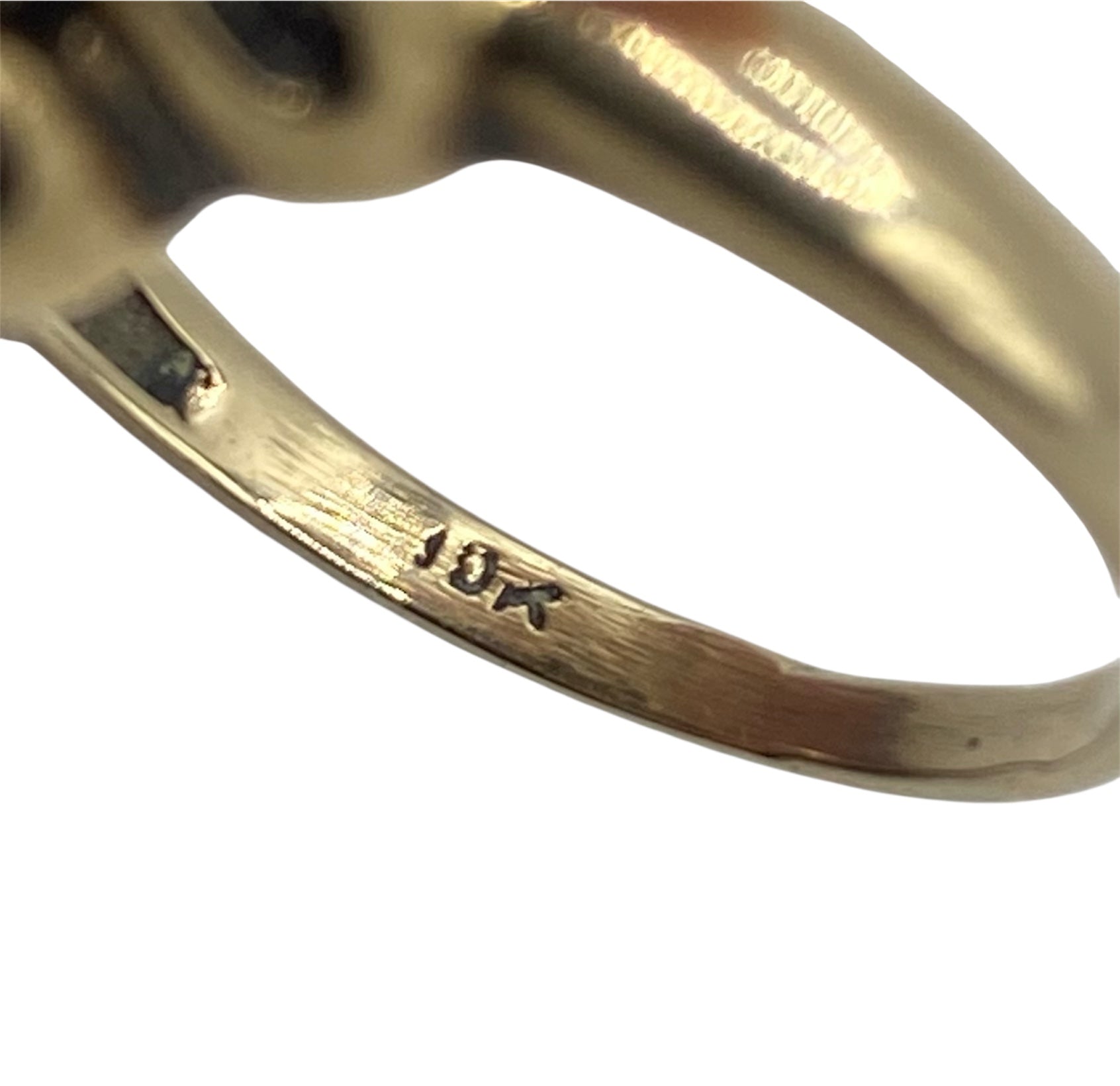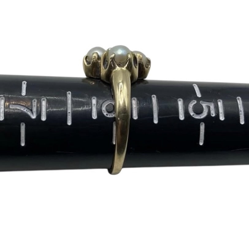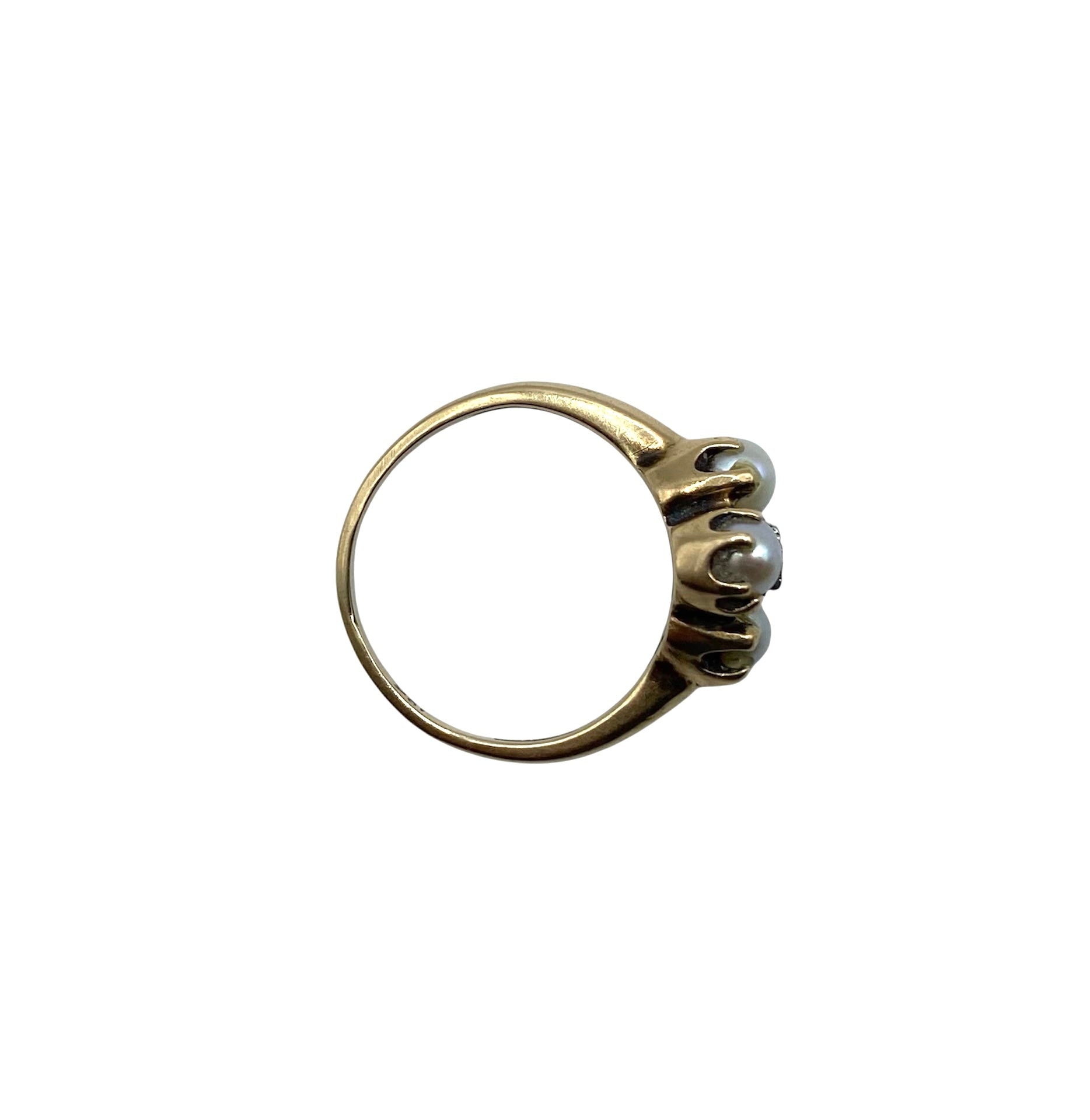 Antique 1890s/ early 20th century pearl cluster ring with small center piece diamond set in 10k yellow gold.