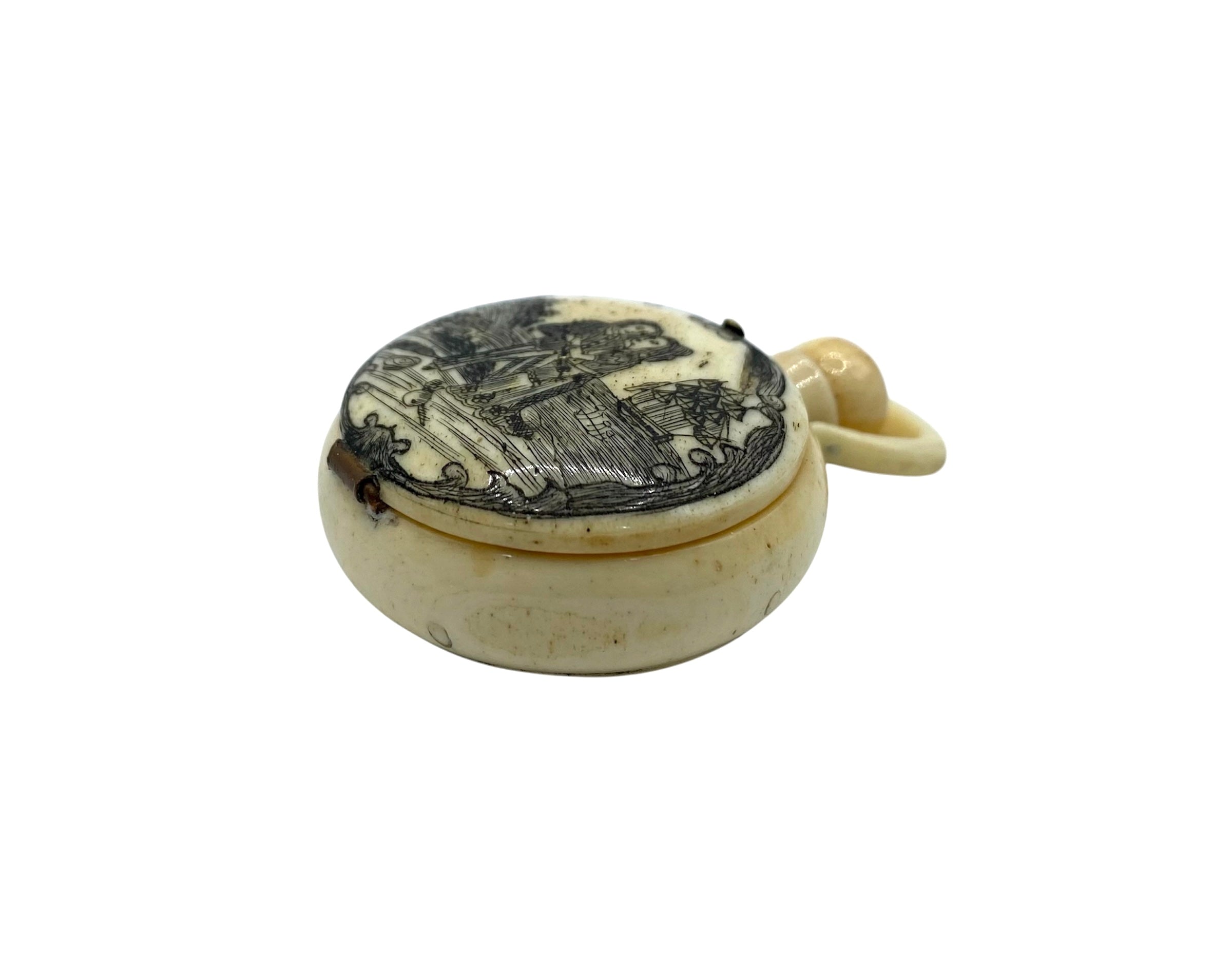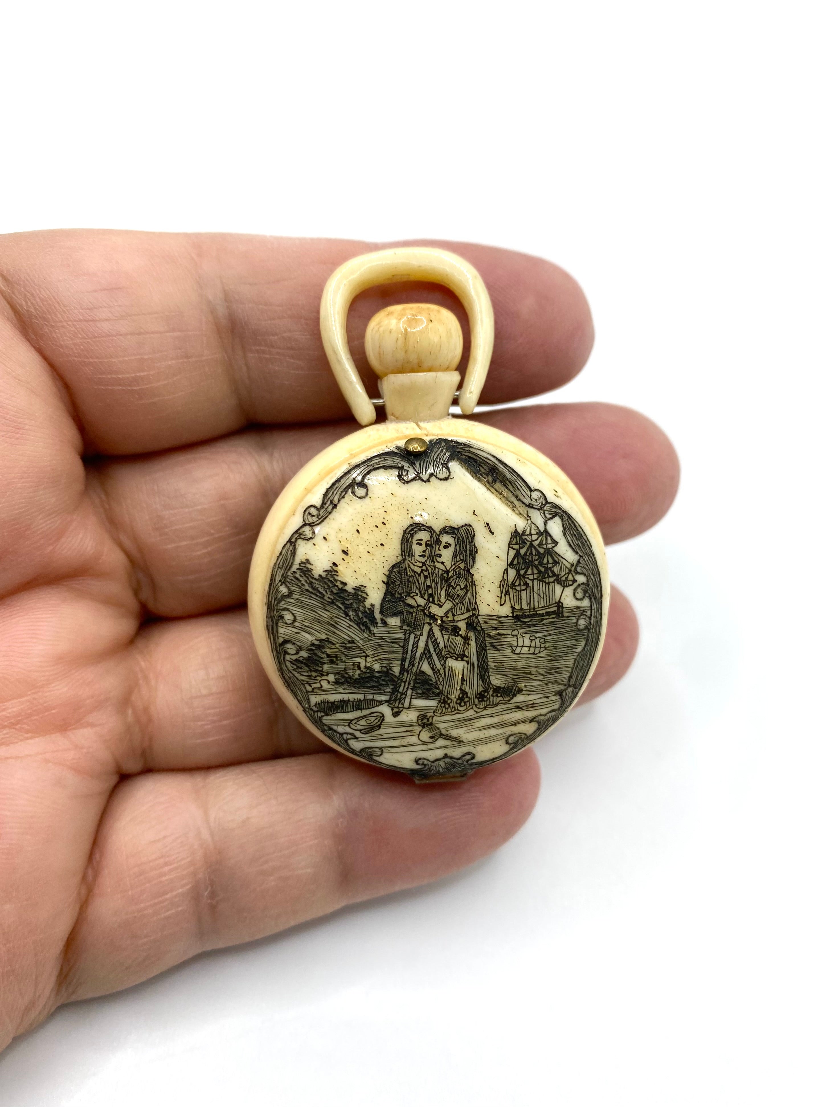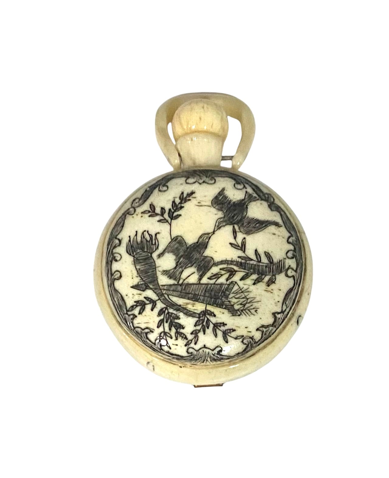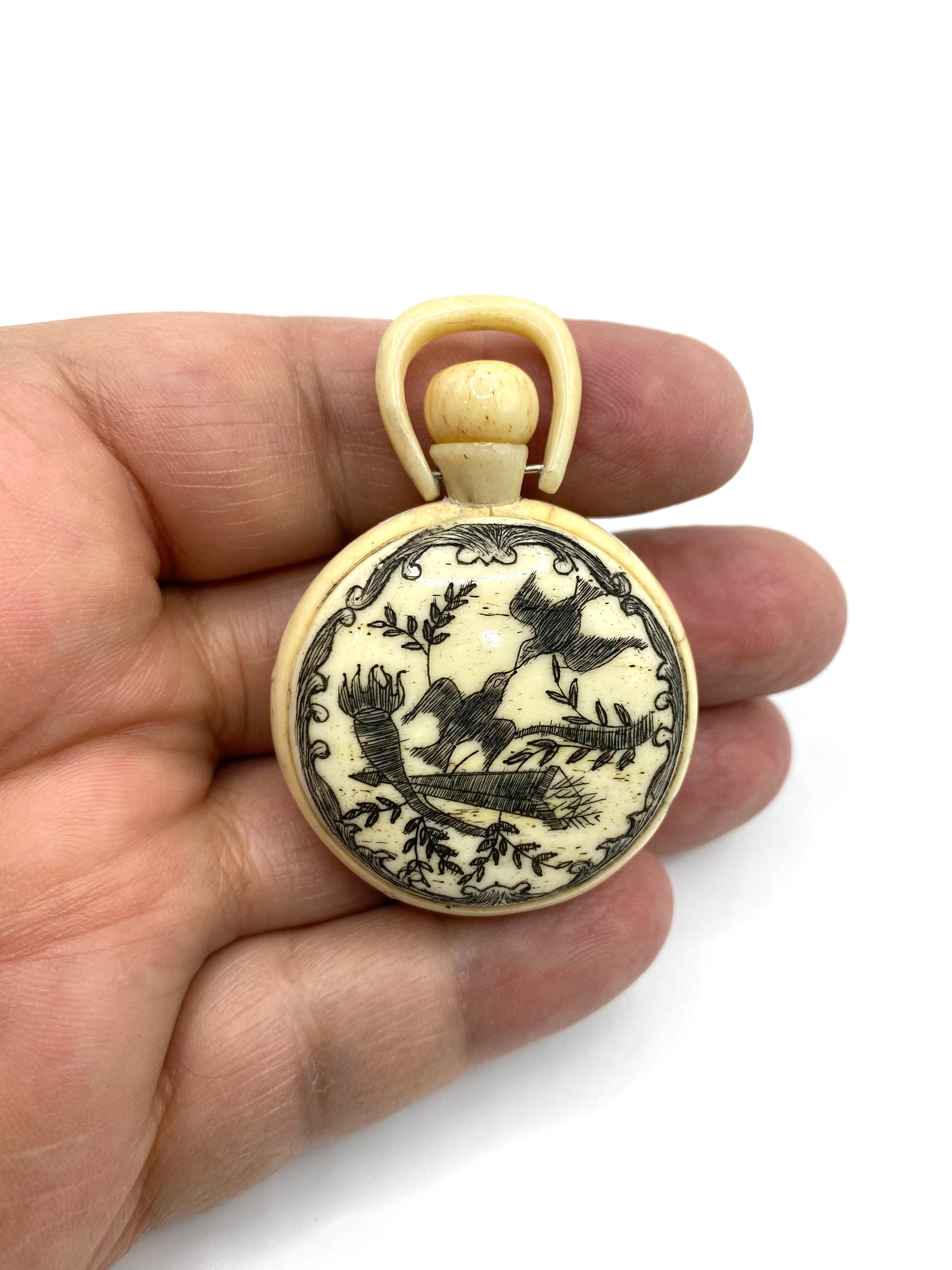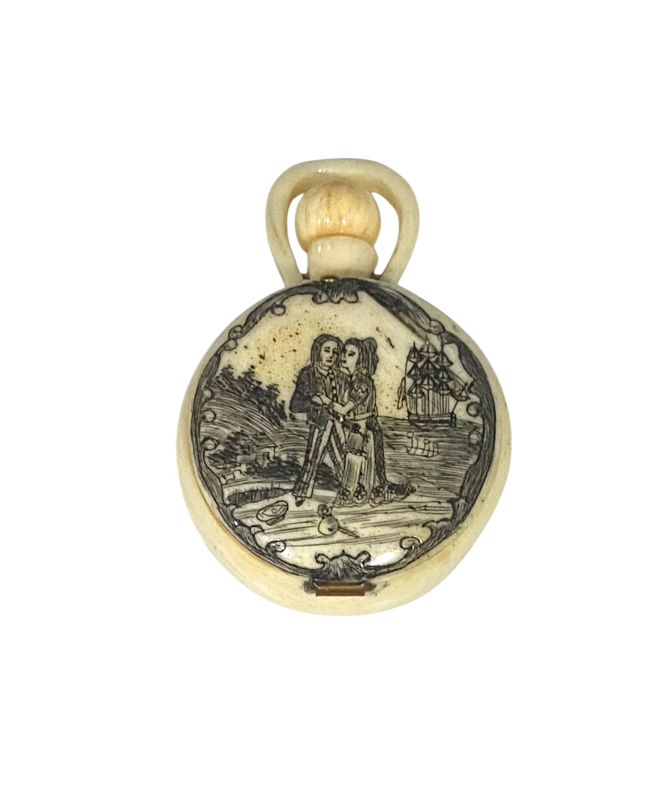 Scrimshaw developed from the practice of sailors on whaling ships creating common tools, where the byproducts of whales were readily available. The term originally referred to the making of these tools, only later referring to works of art created by whalers in their spare time. Whale bone was ideally suited for the task, as it is easy to work and was plentiful.