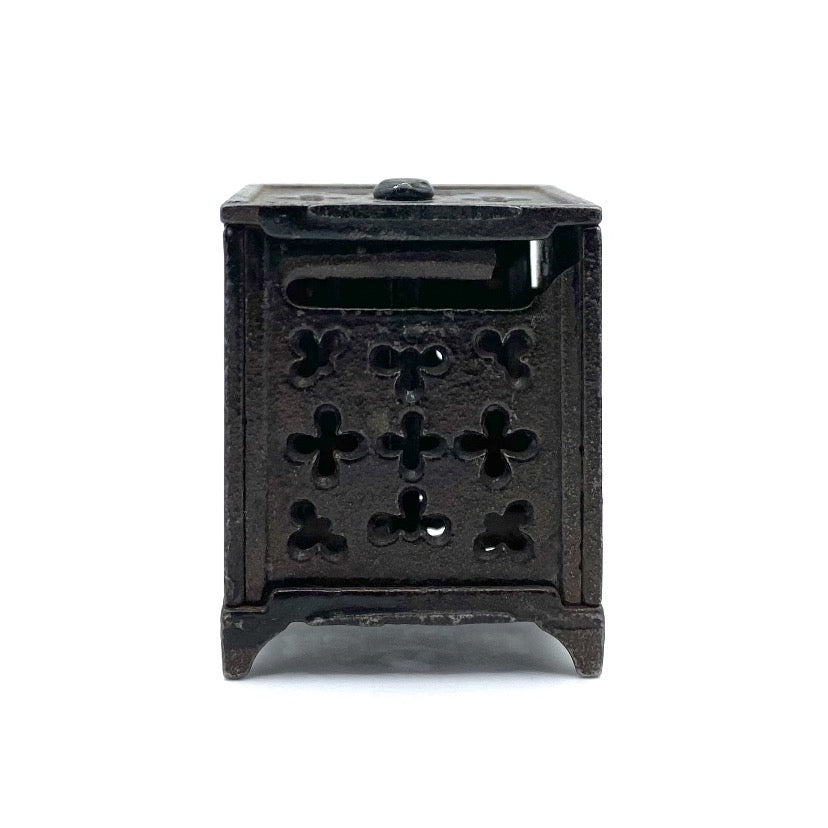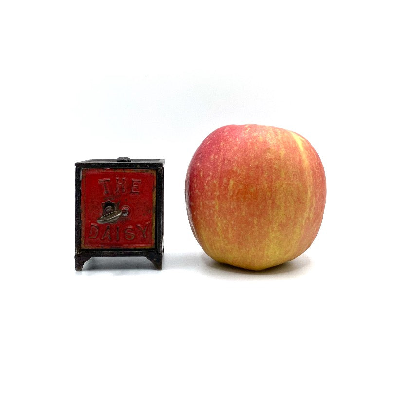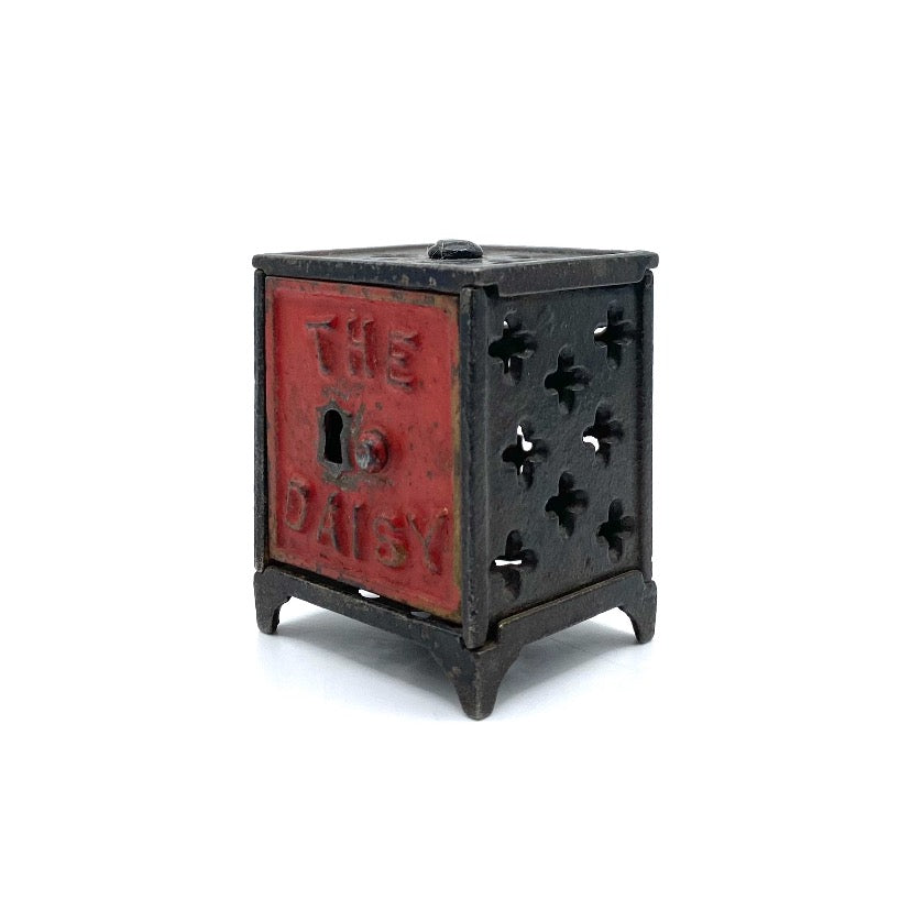 Small still piggy bank like a safe called “the Daisy” looks like it might have been made by Shimer in the 1890s