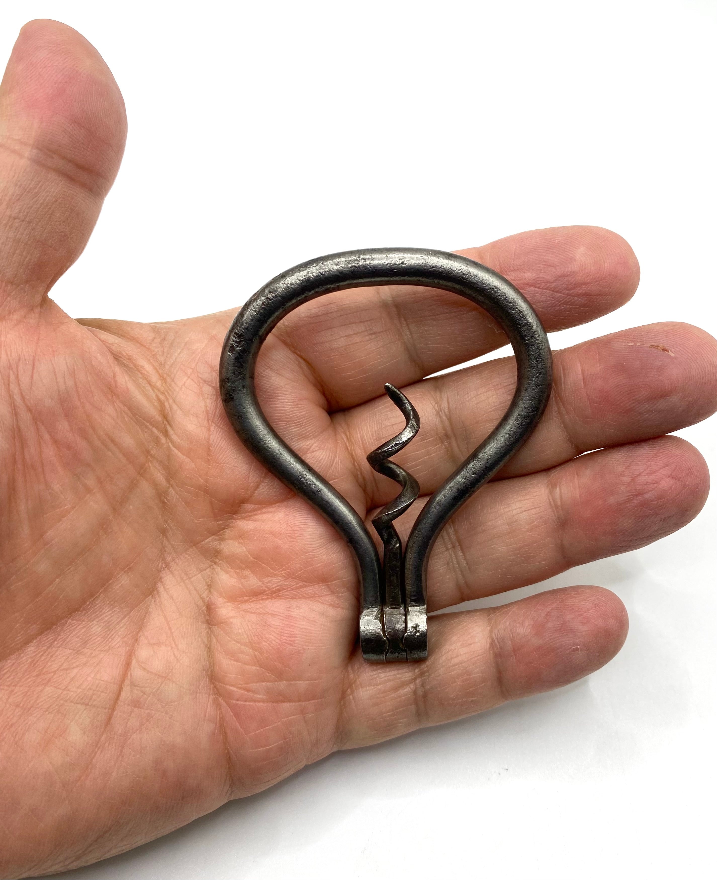 These are known as harp or bow style corkscrews this is an England design with oblong oval shaped three finger pull handle. The handle is designed as a tension spring which holds the worm (corkscrew) in place as you rotate the worm out of the handle it locks it into place the actual worm is a bladed worm designed to cut through the cork with ease. This is semi rare as the handle shape is not often seen.