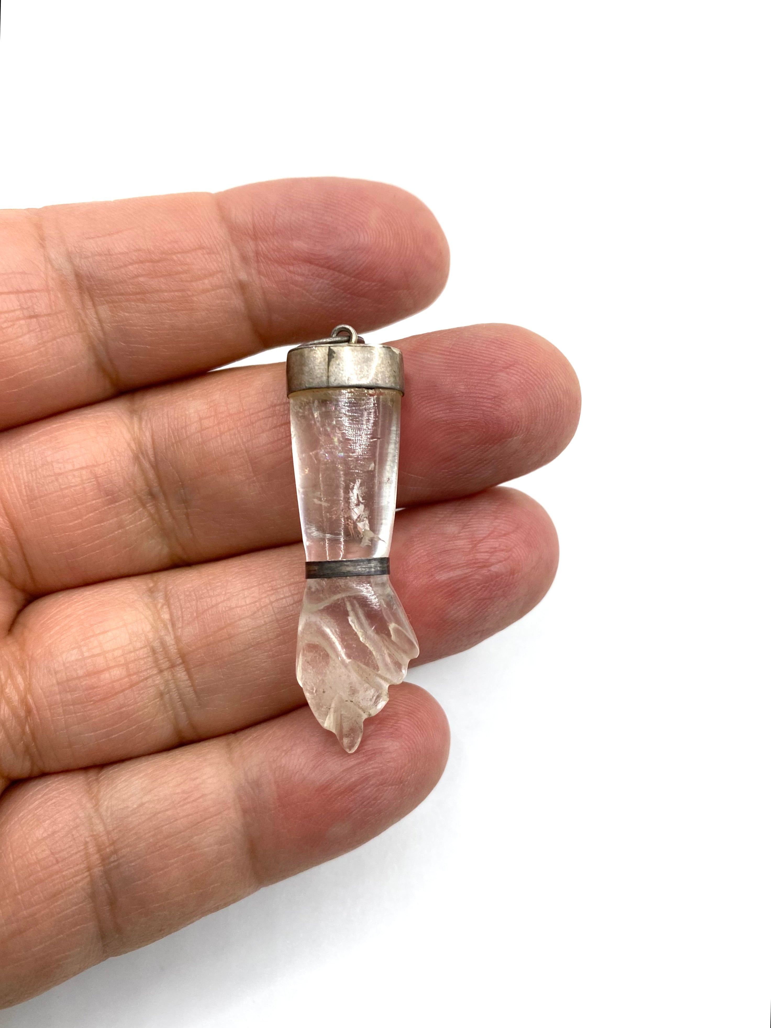 Antique Italian clear quartz Mano Figa pendant with silver chain.