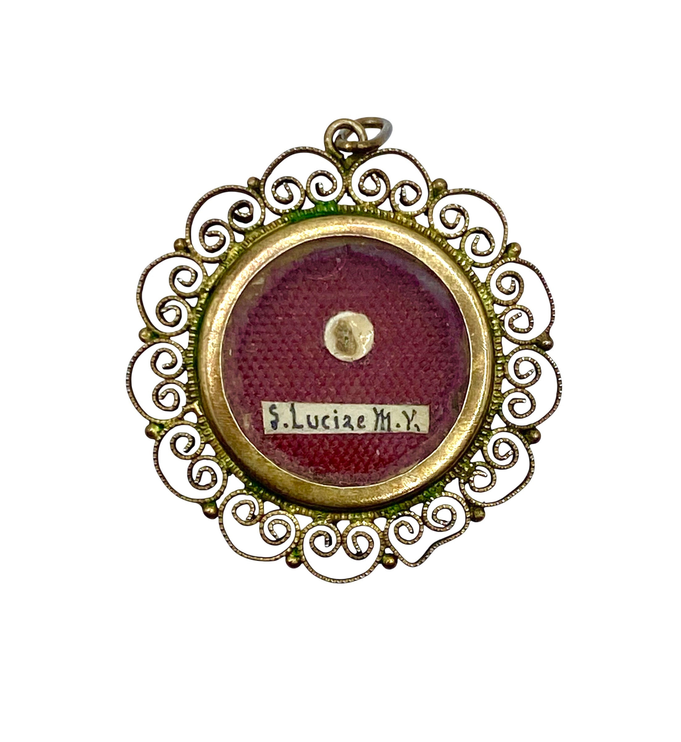 Antique Silver Reliquary Pendant, Saint Lucie.