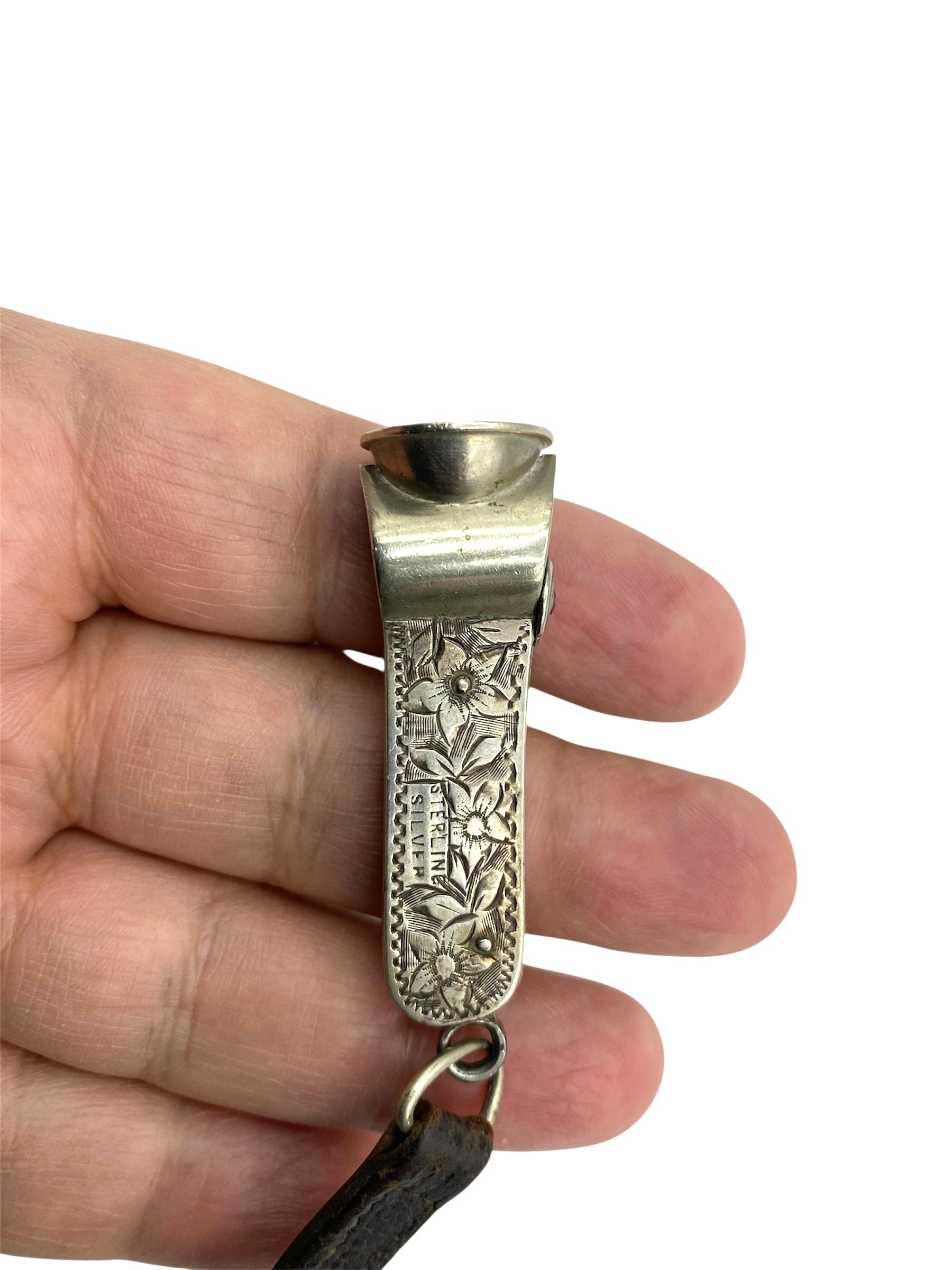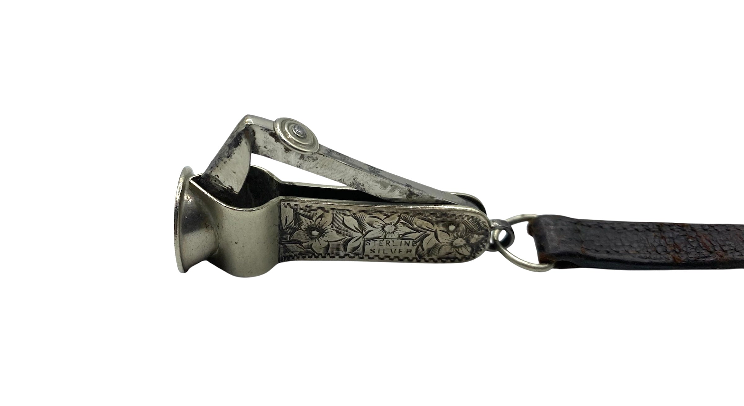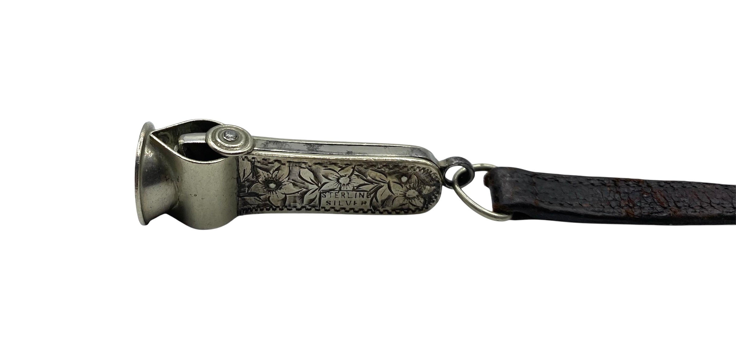 Antique sterling Silver m, pocket, cigar cutter with engraved floral decoration and original cord.