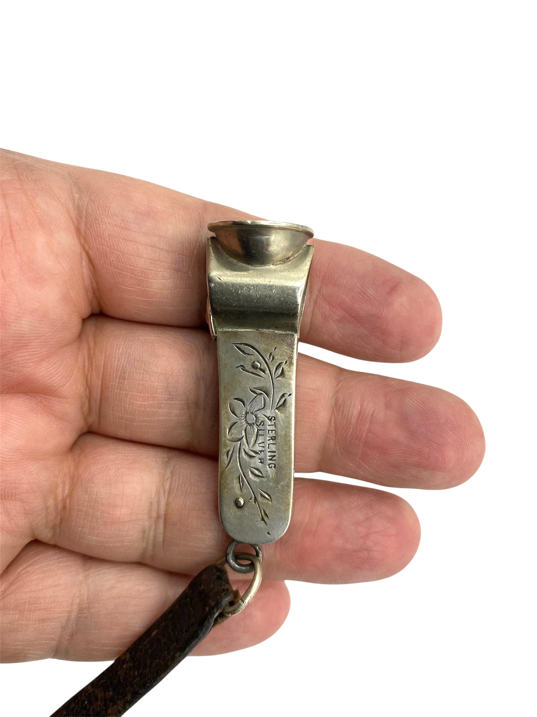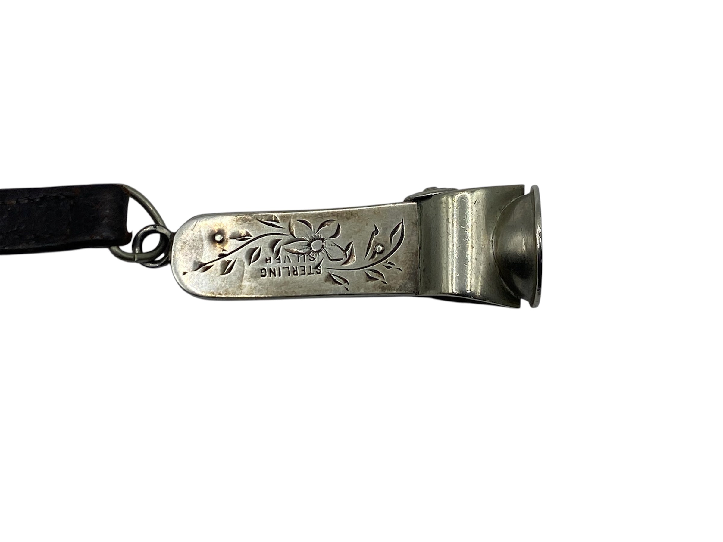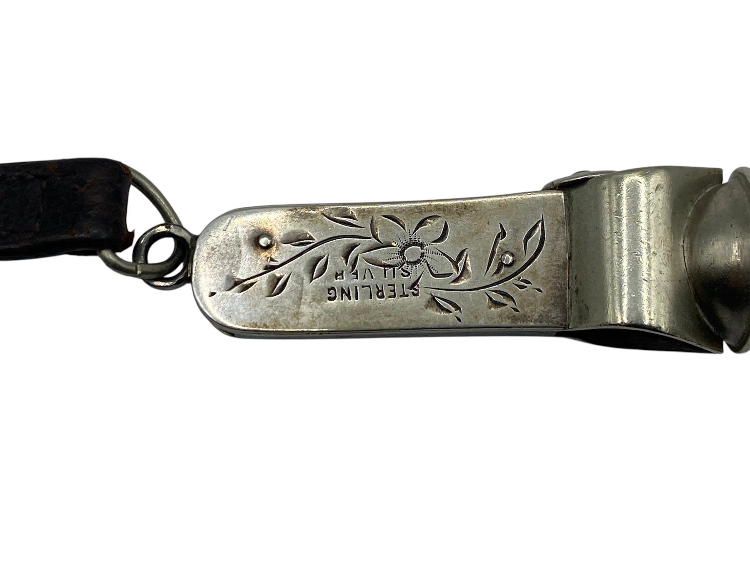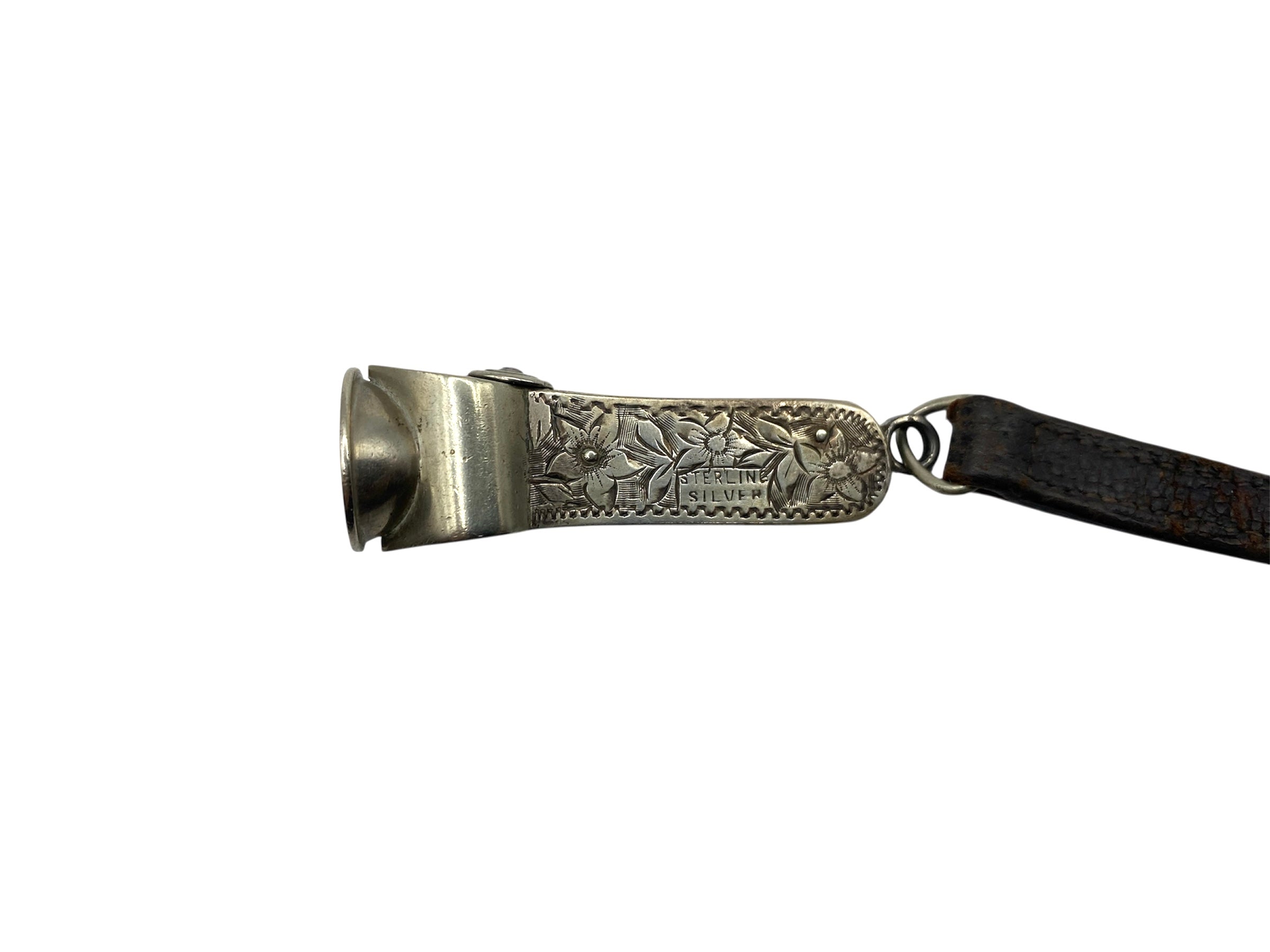 Antique sterling Silver m, pocket, cigar cutter with engraved floral decoration and original cord.
