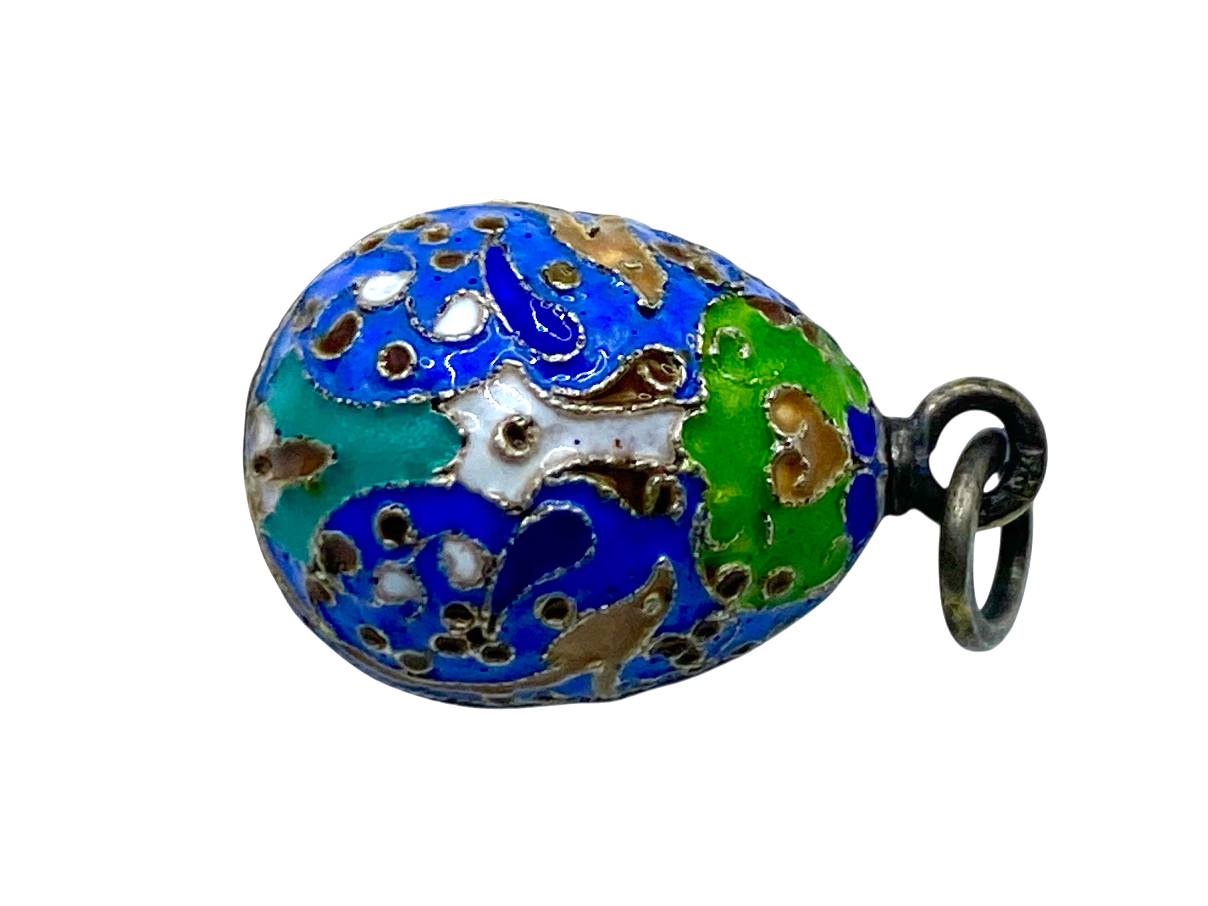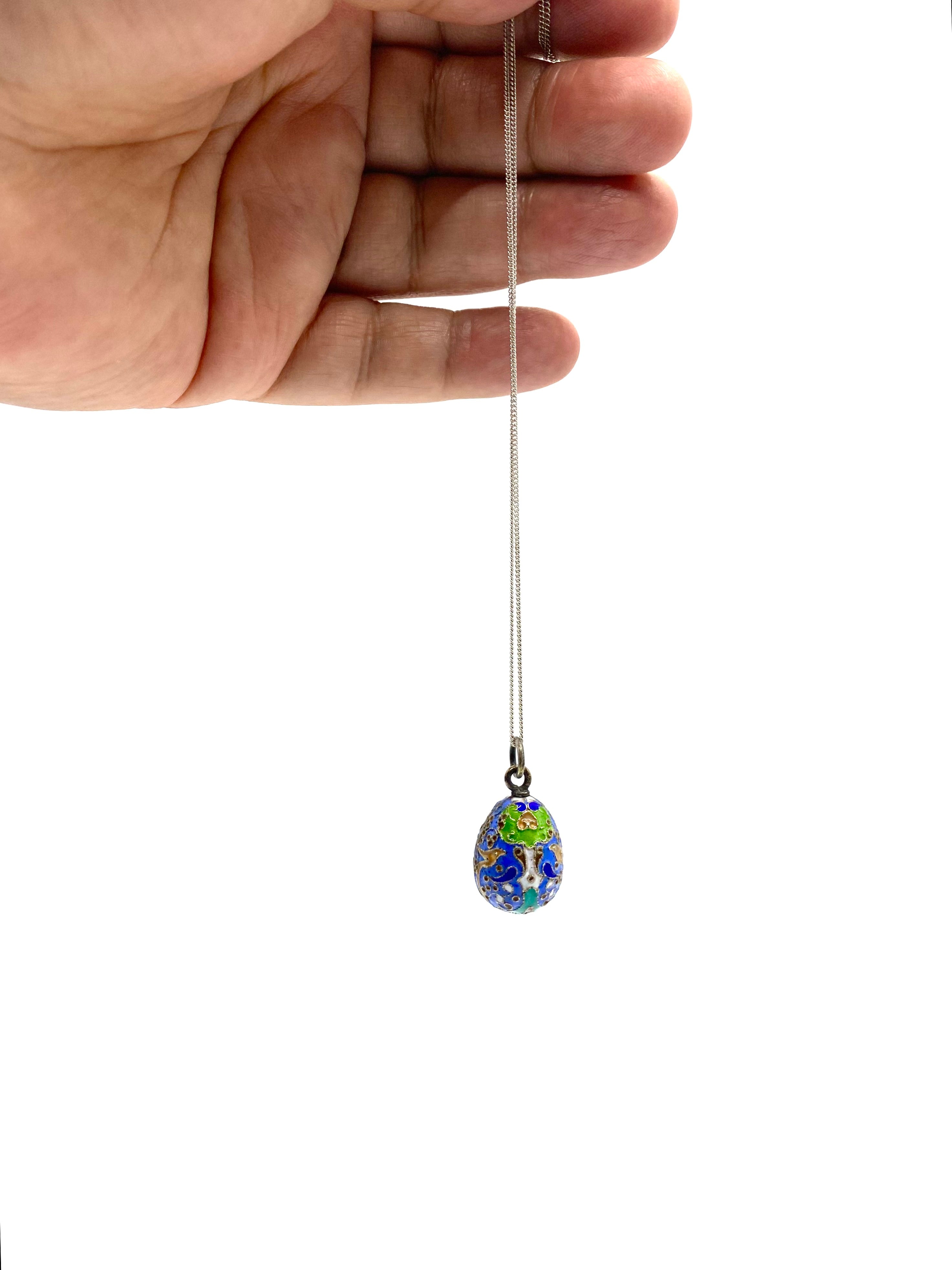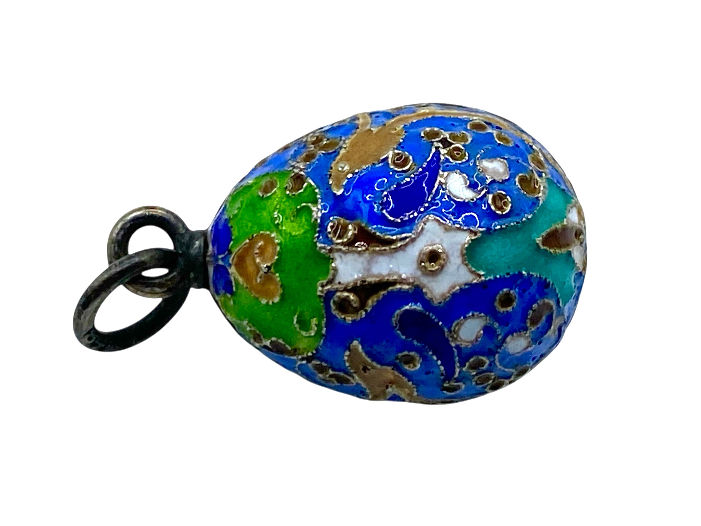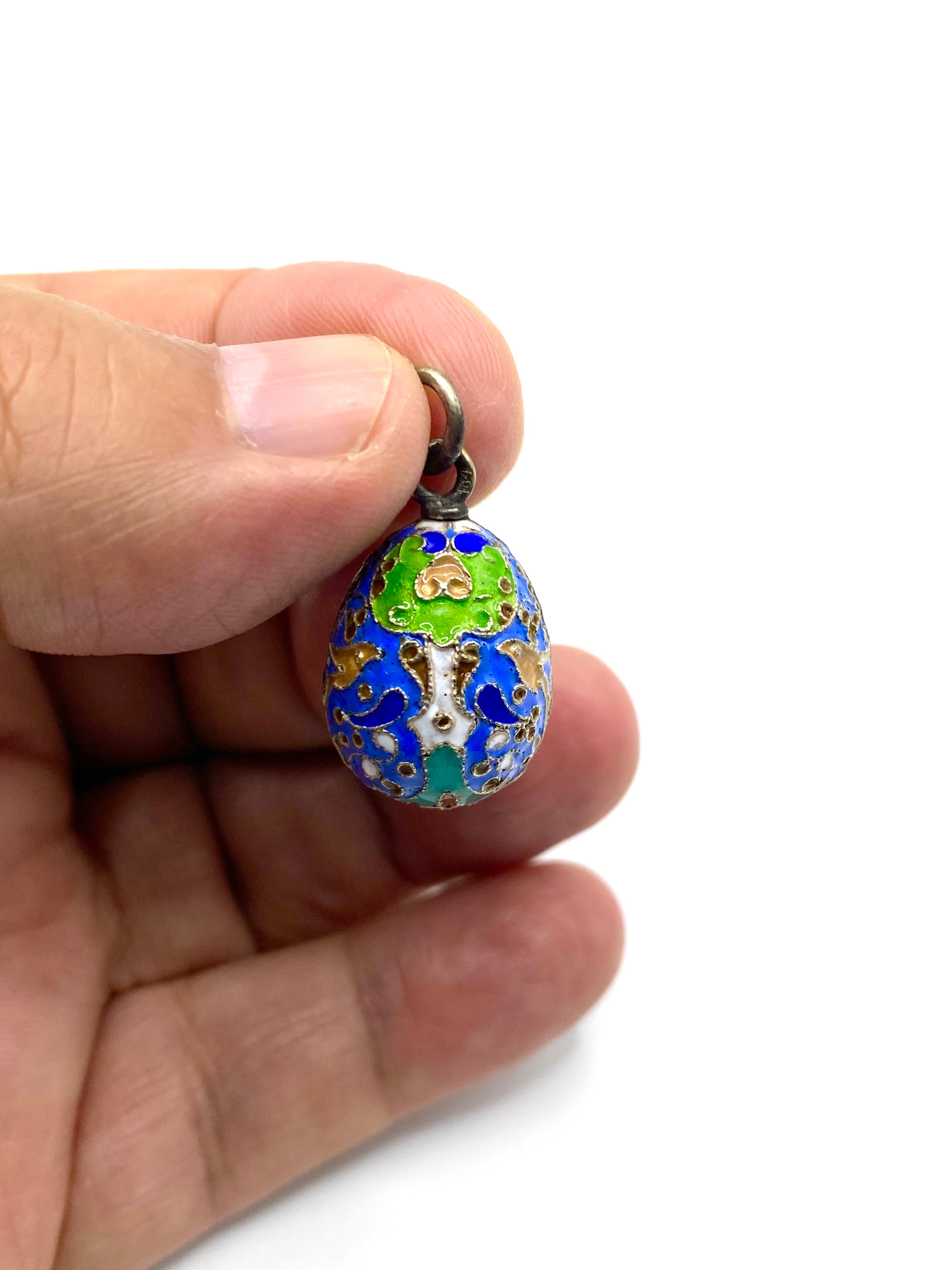 Antique Sterling silver, Russian Imperial Cloisonne Egg Pendant by Fabergé master Ivan Khlebnikov