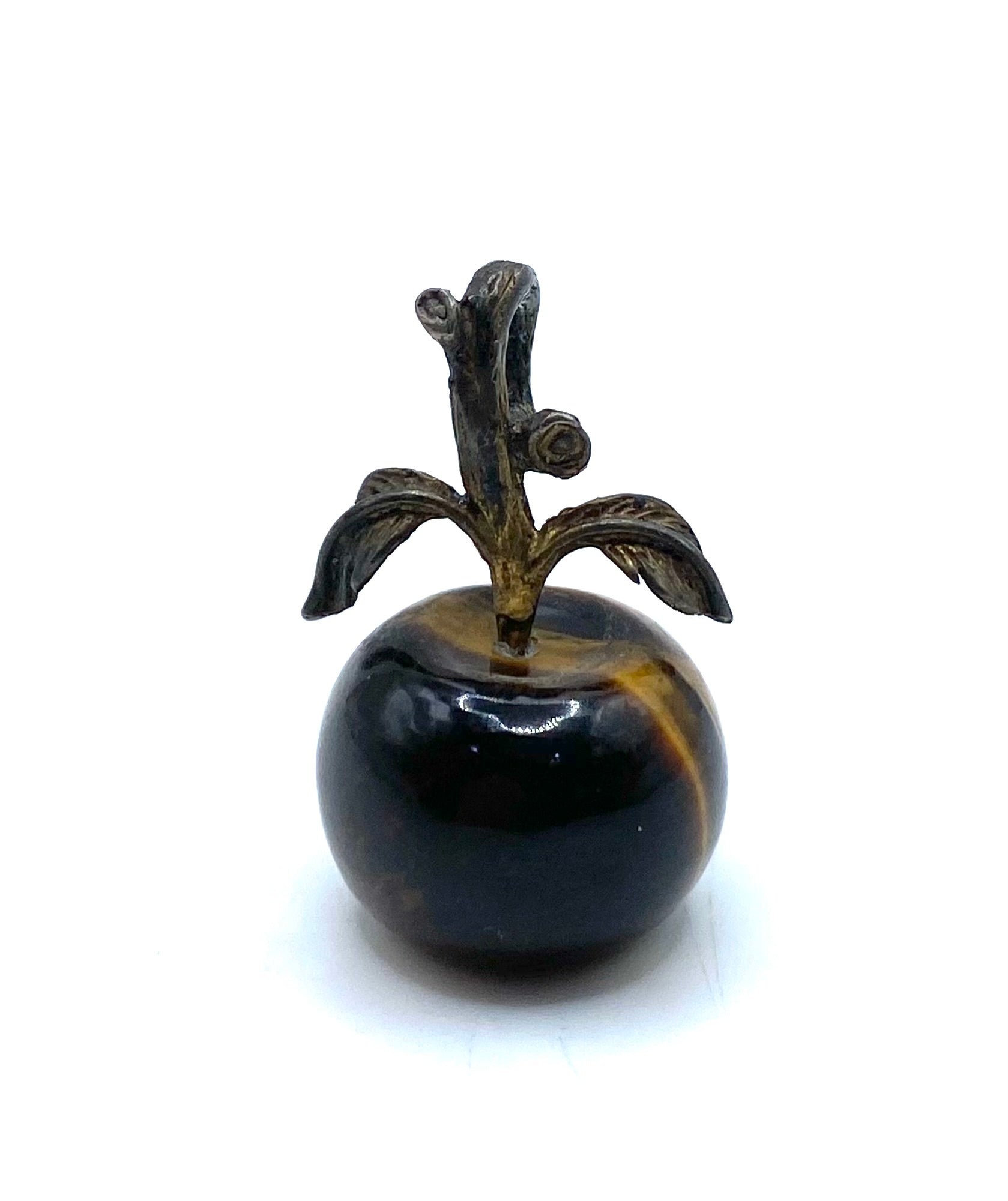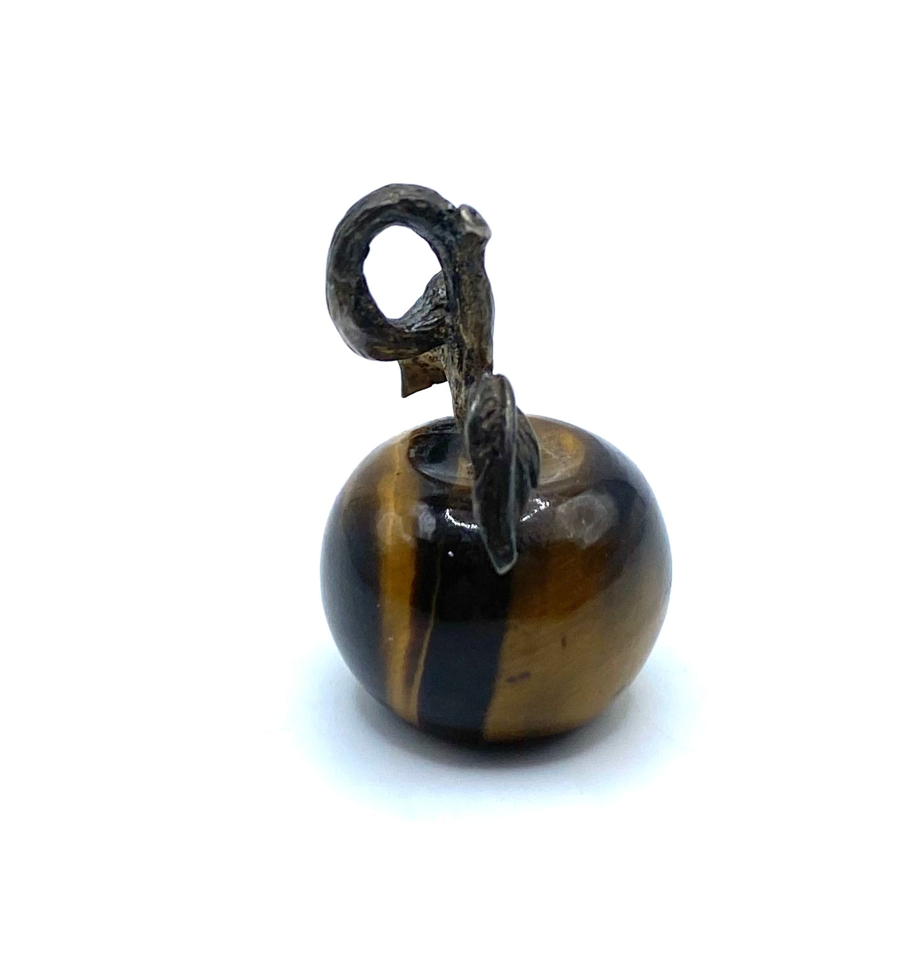 The apple is made of Tiger Eye Quartz and the leaves are made of 925 gilt silver.