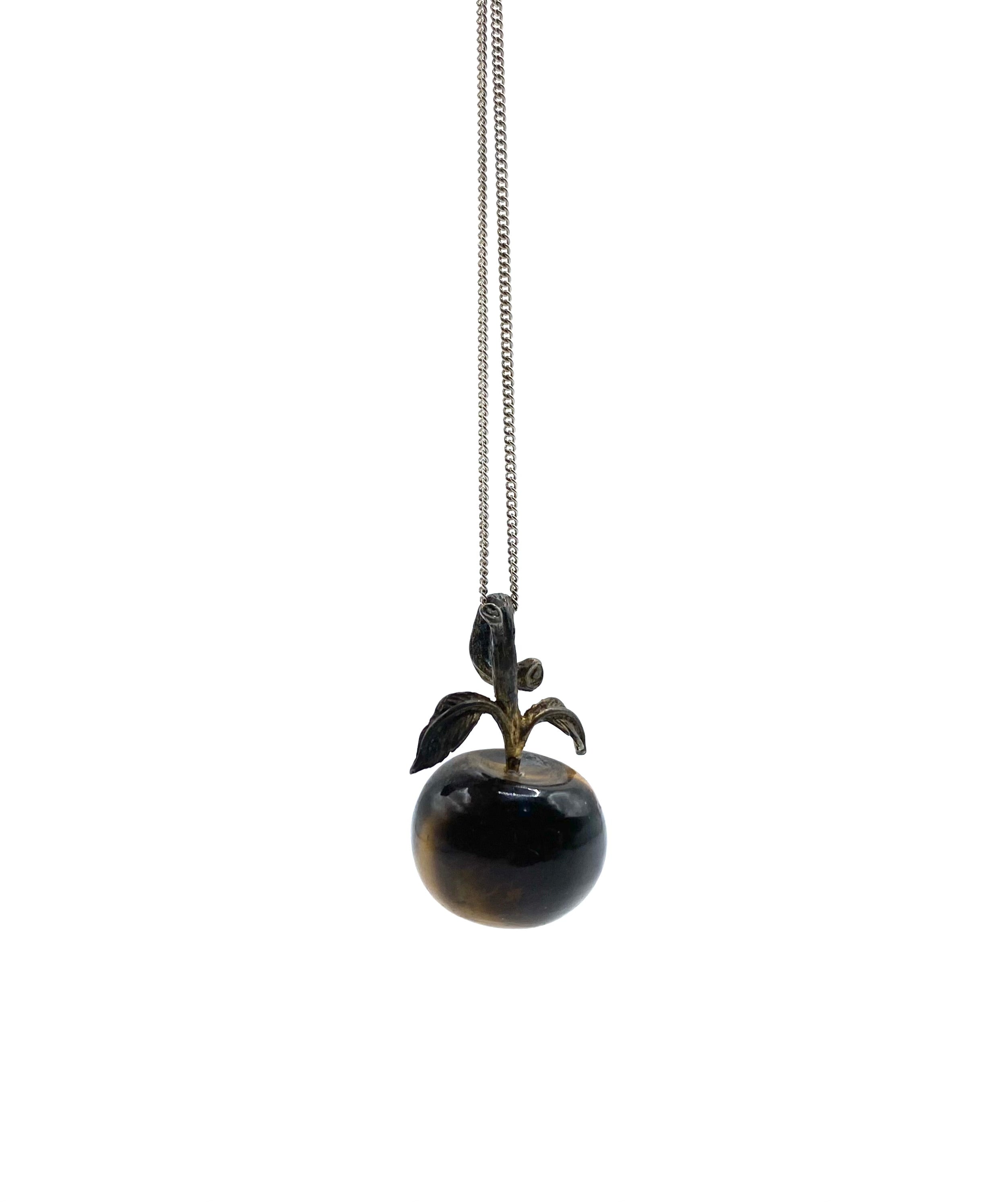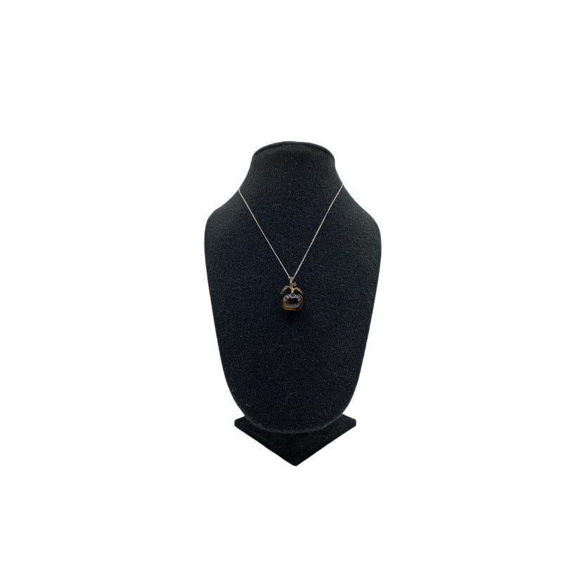 Antique Tiger Eye quartz apple with silver pendant necklace.