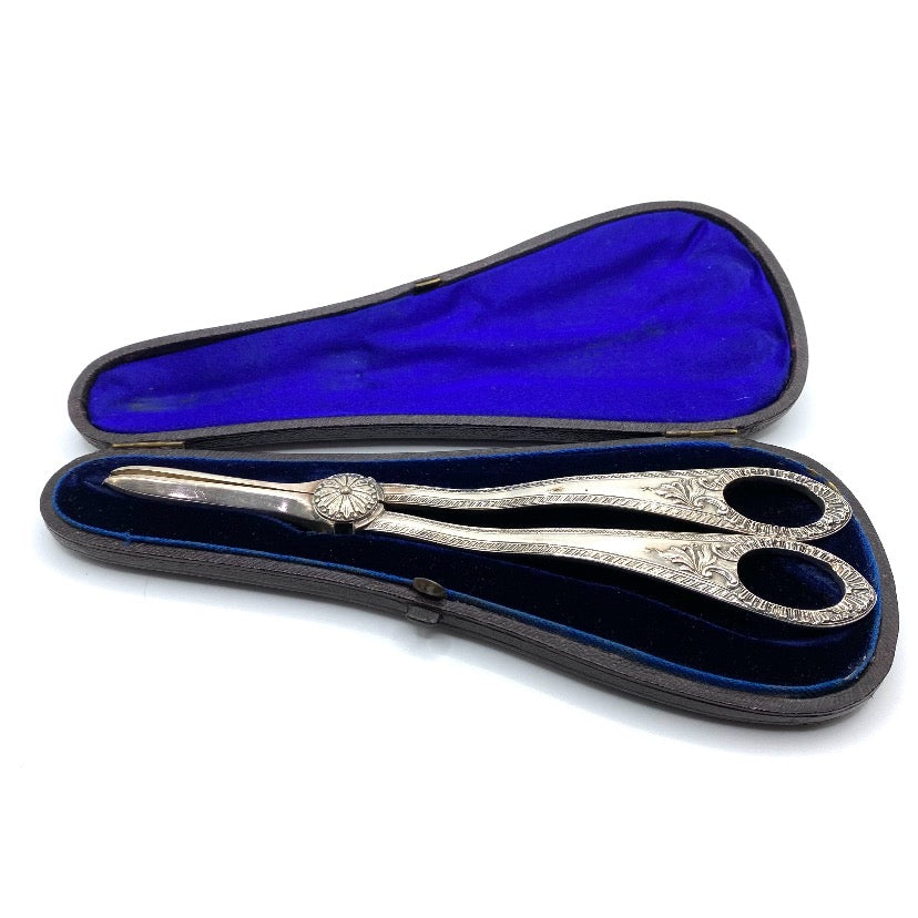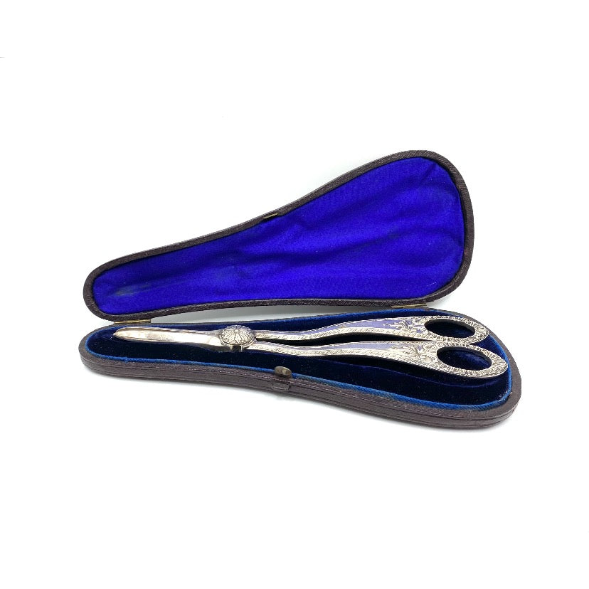 Antique, Victorian Cased Silver Plated Grape Scissors