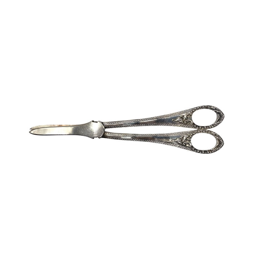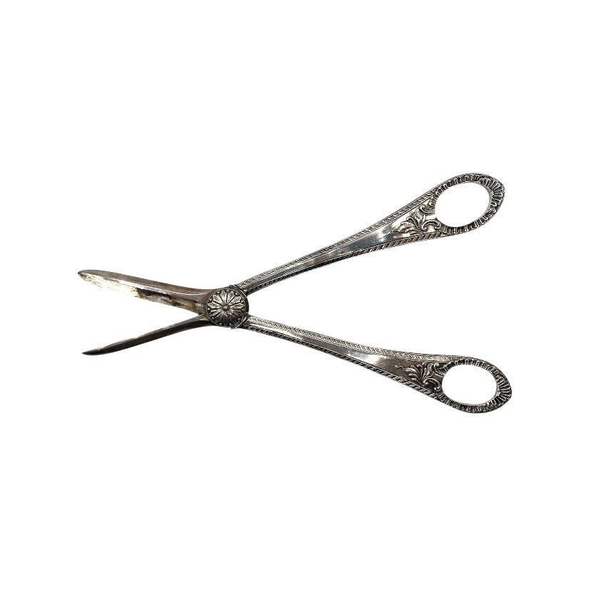 The dining etiquette of the [Victorian/Edwardian] period encouraged the development of specific utensils for eating and serving particular foods such as grapes. ‘The Manners and Tone of Good Society’, first published in 1879, outlined the correct conduct of the dinner party but focused on the complicated and changing use of cutlery. With a few exceptions (such as for eating bread and some fruit), touching food with the fingers was frowned upon, and diners were presented with an alarming and growing range of specialist utensils for eating particular foods. It was important to be able to recognise items such as nut picks, sardine tongs and grape scissors, and to know how to use them correctly. The Manners and Tone of Good Society advised: “When eating grapes, the half closed hand should be placed to the lips and the stones and skins adroitly allowed to fall into the fingers and quickly placed on the side of the plate,