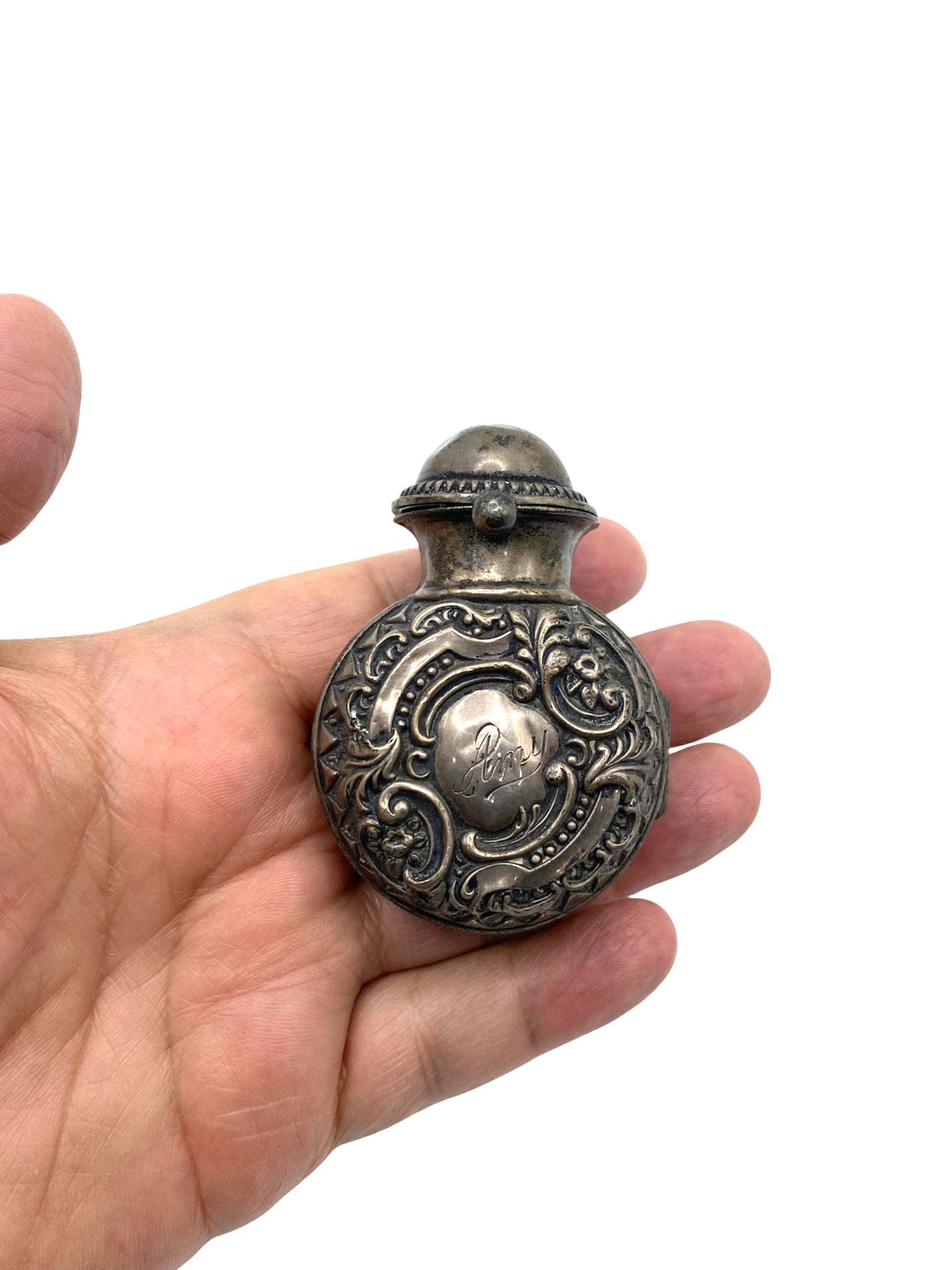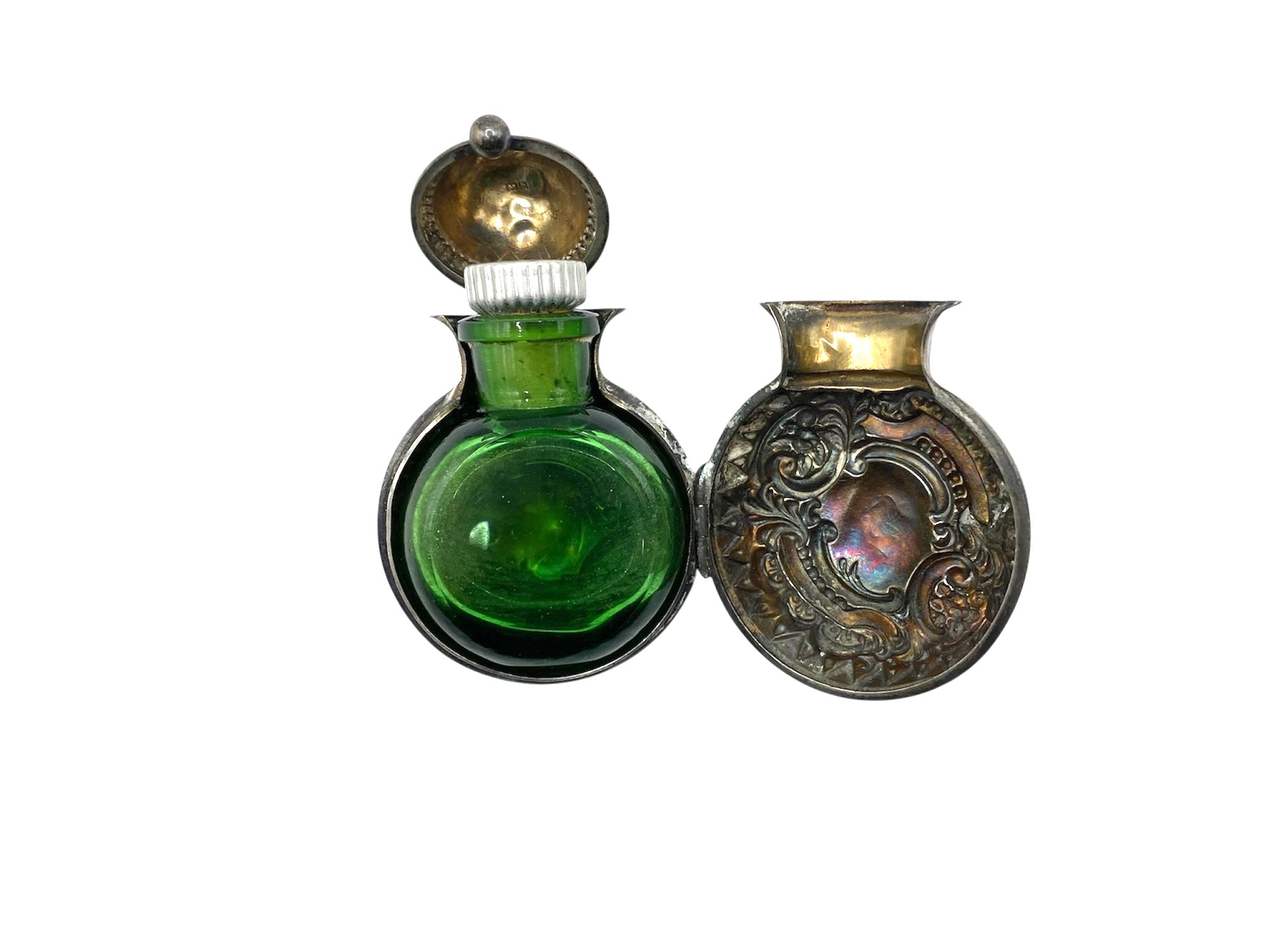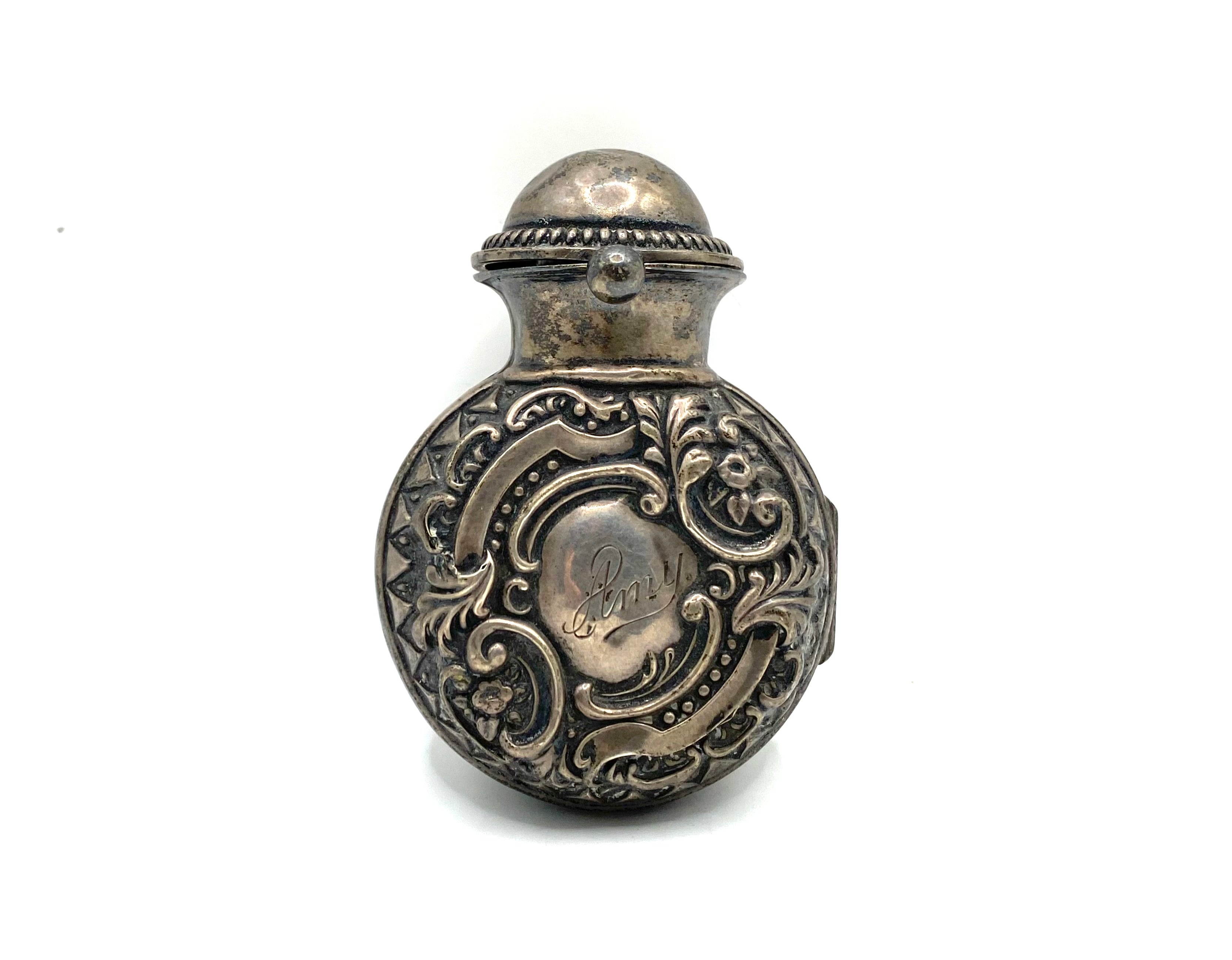 Sterling silver vinaigrettes are small decorative boxes that were used during periods of travel, as a more accessible and practical alternative method of carrying perfume and scents than moving large glass bottles and vials. The perfume, or aromatic vinegar, would be contained within these boxes soaked in a sponge. The box would also have a grille to cover the sponge. Vinaigrette sizes tended to vary, with their widths spanning from half and inch to 4 inches. Silver examples would always be gilded at the point where the sponge would touch the metal. This was to avoid any corrosion. Today, vinaigrettes are a highly collectable item of antique silver