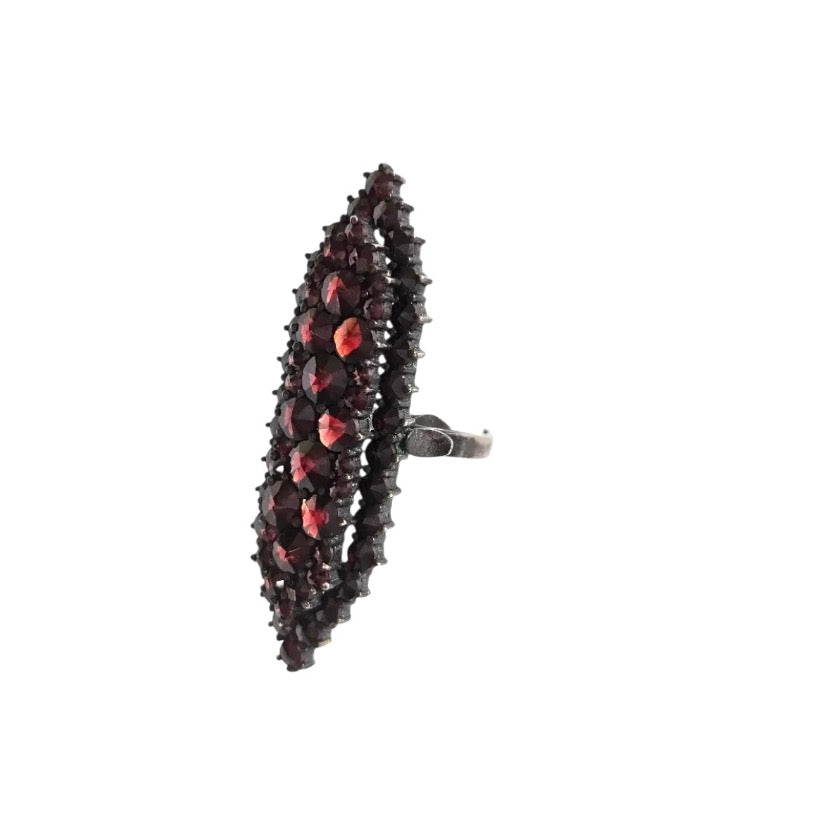 Beautiful, Victorian Bohemian Garnet, Silver Ring.