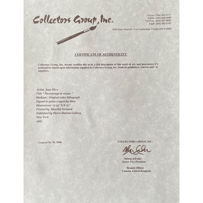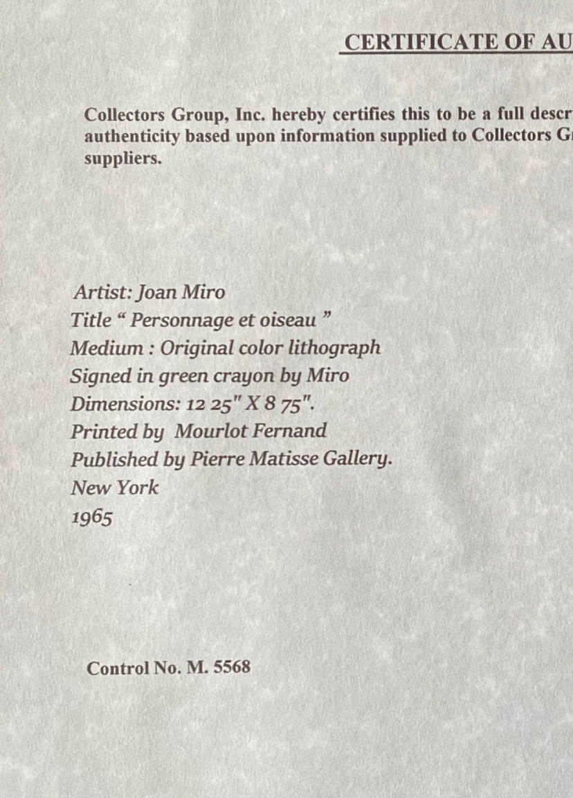 Joan Miro, " Personnage et oiseau" , 1953, Lithographie. Control No. M. 5568