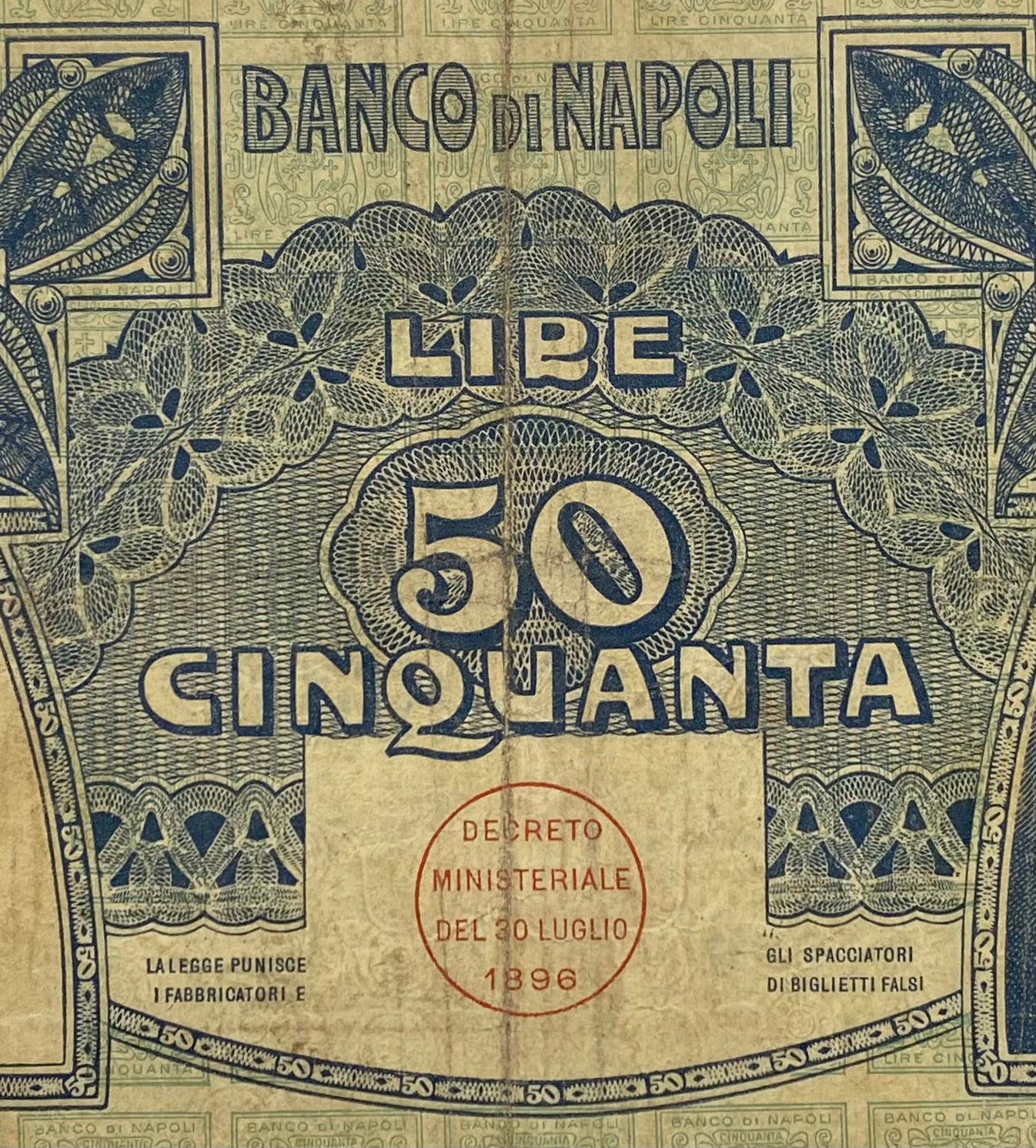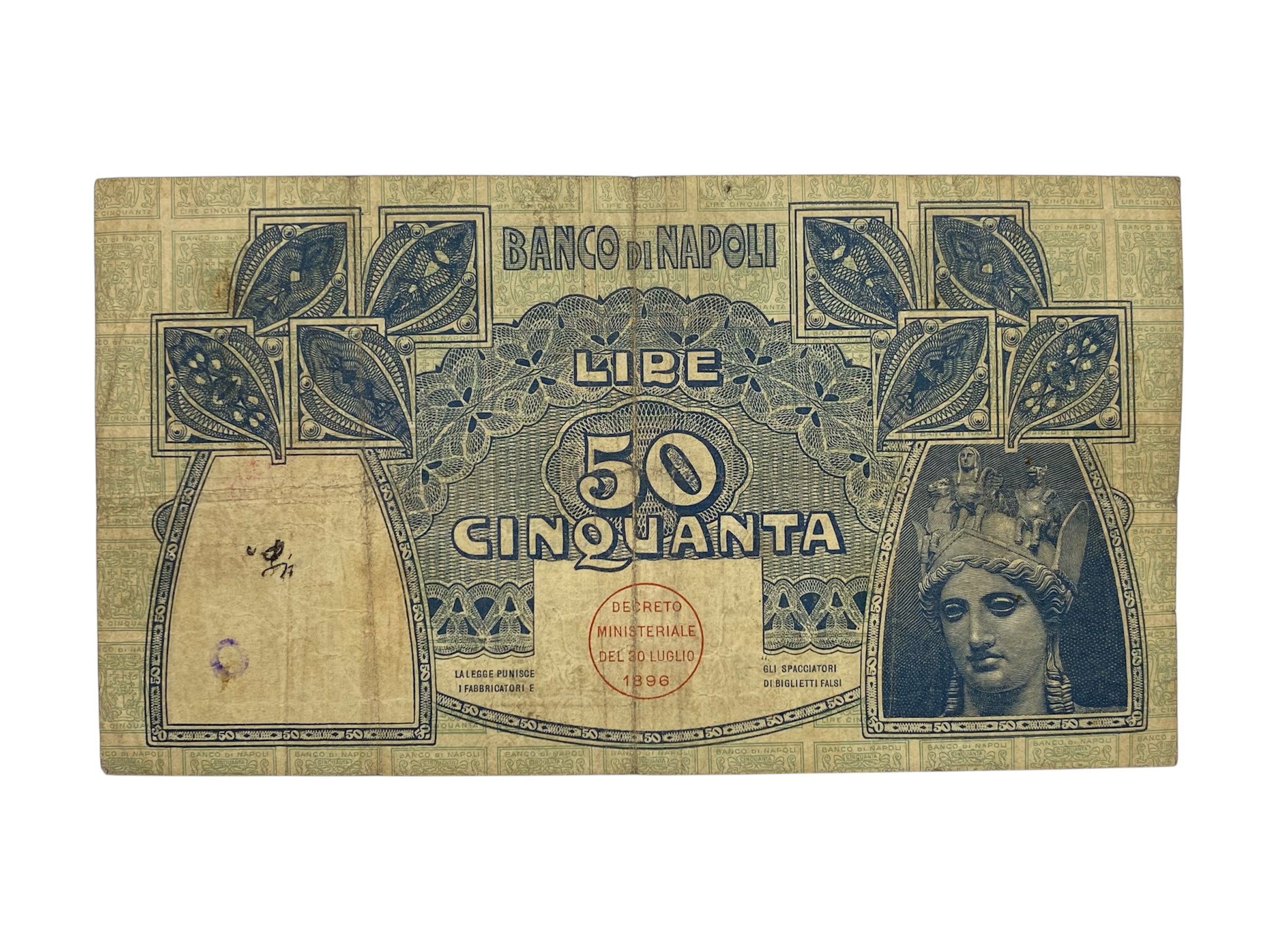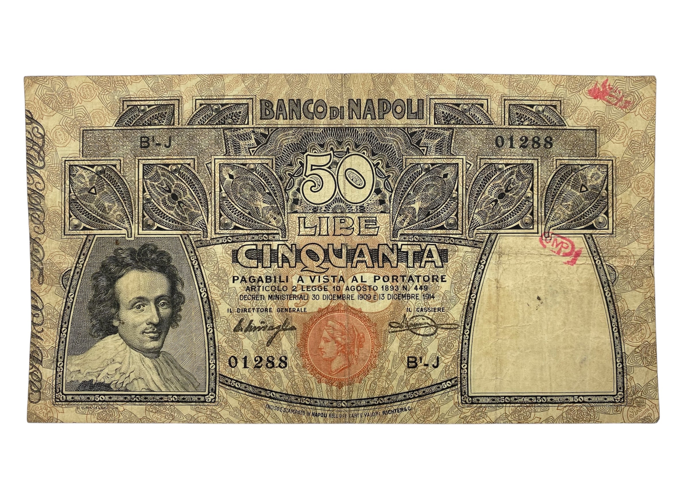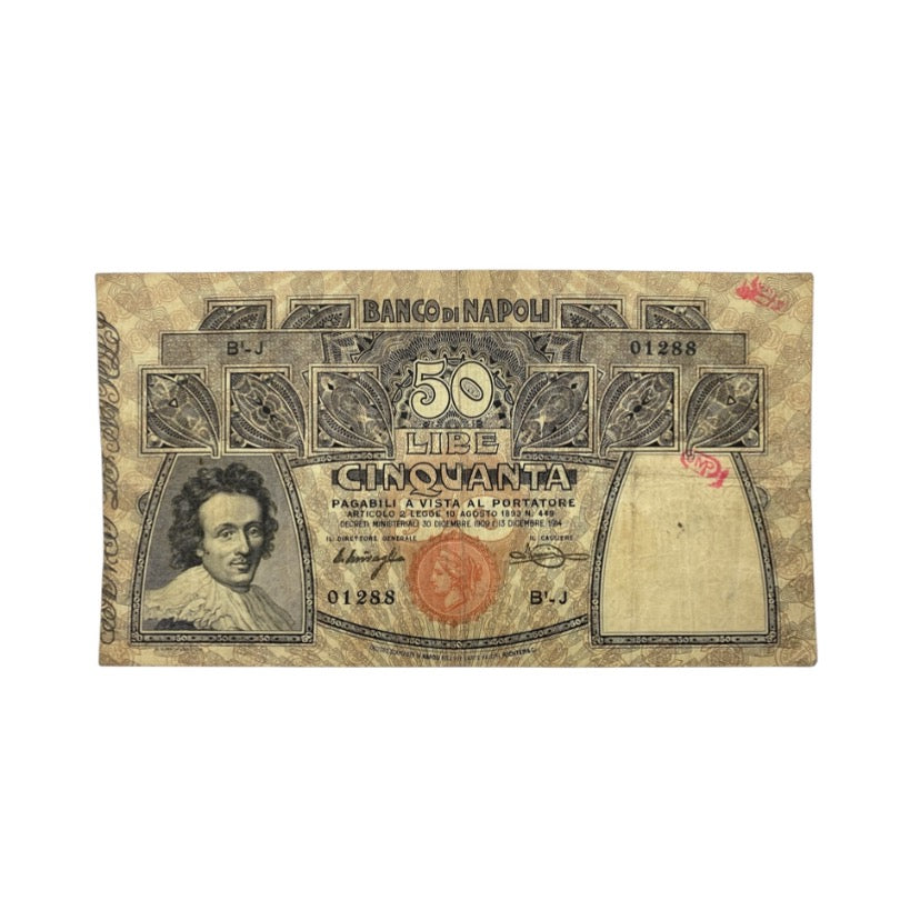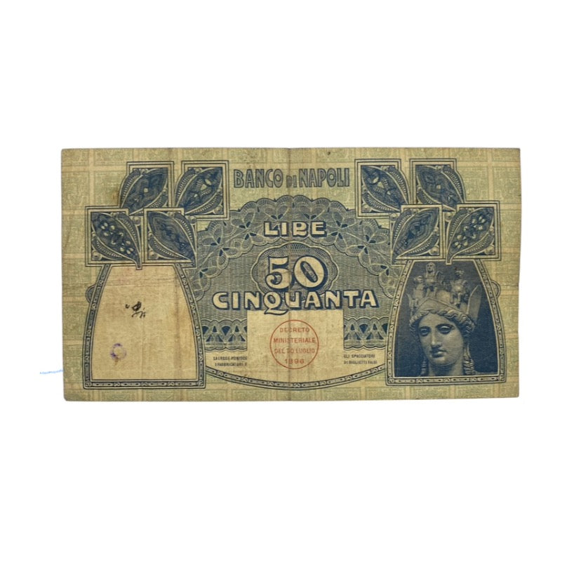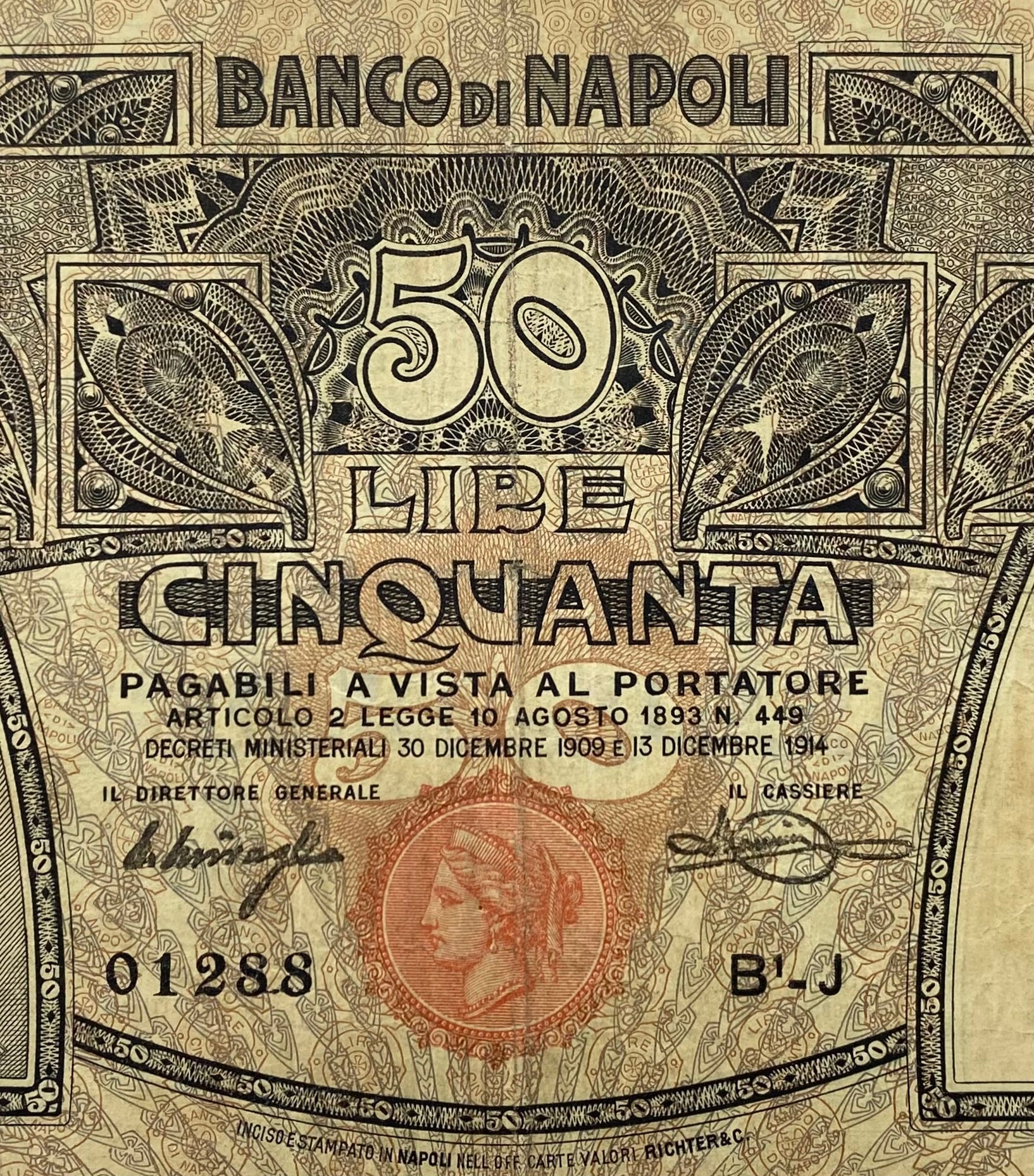 Kingdom of Italy 50 Lire Banco di Napoli decree 13-12-1914