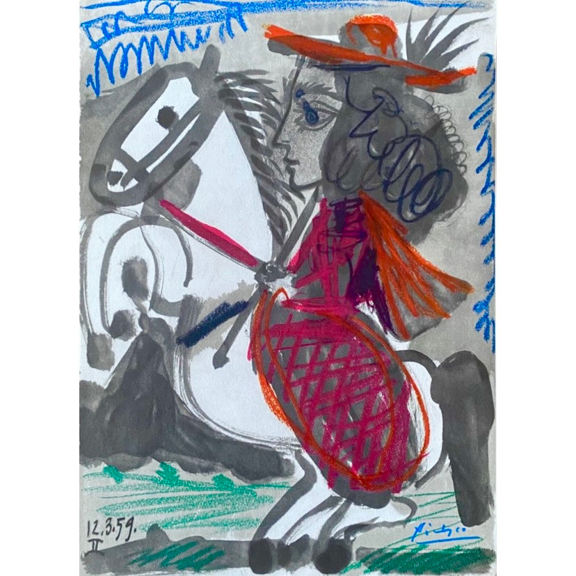 Lithograph Pablo Picasso "Jacqueline Riding a White Horse," from "Toros y Toreros," 1961