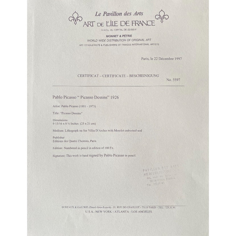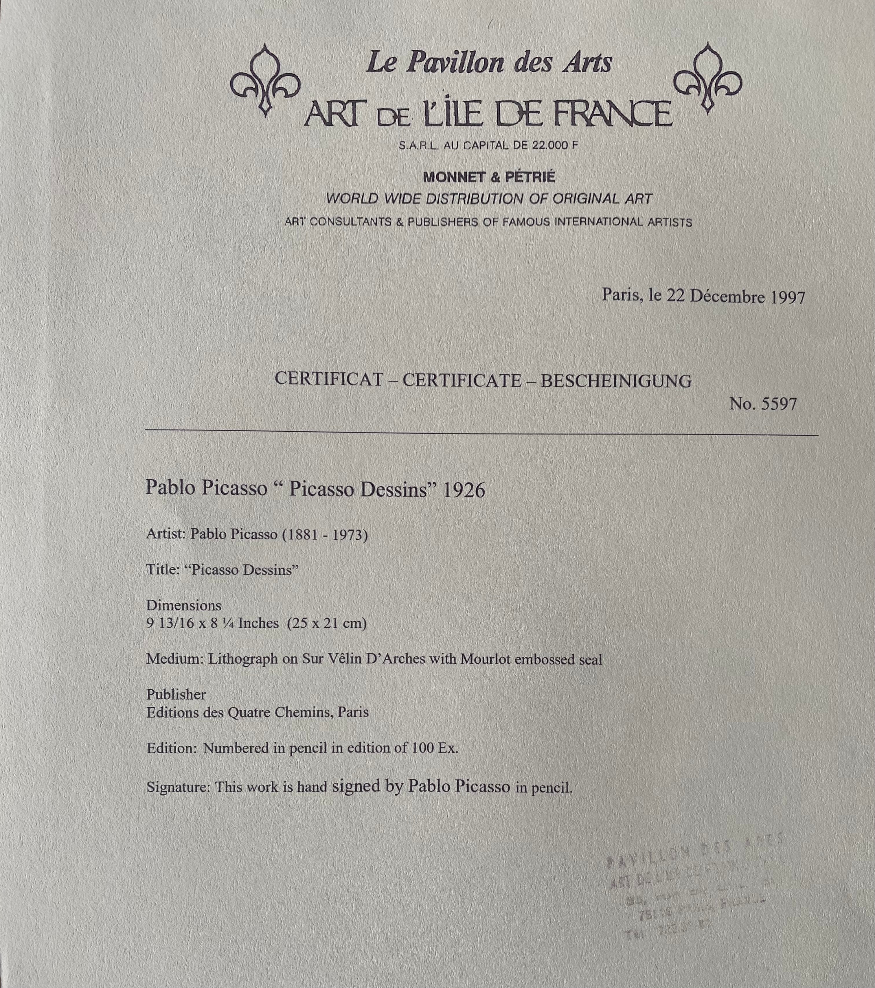 “Picasso Dessins” 1926,  Publisher “ Editions des Quatre Chemins “ , Paris. Engelmann Imprimeur-Lithographe, Paris  Edition 100 exemplar