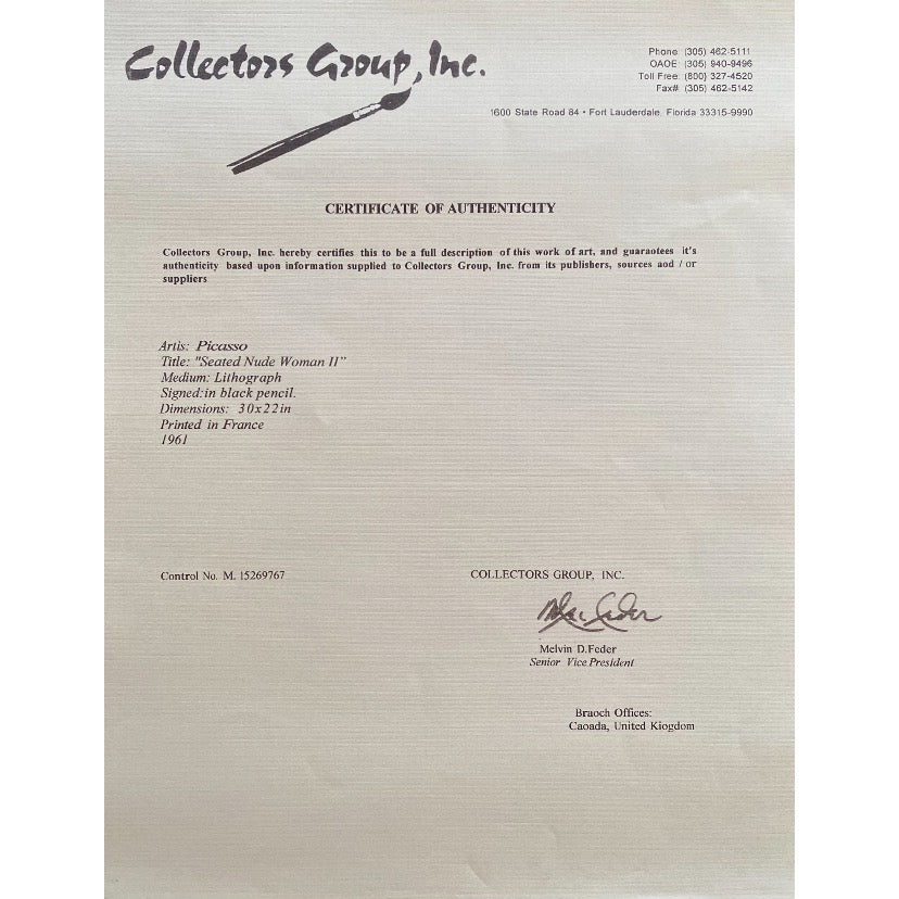 Pablo Picasso lithograph hand signed and numbered “ Seated Nude - woman II “ 1961