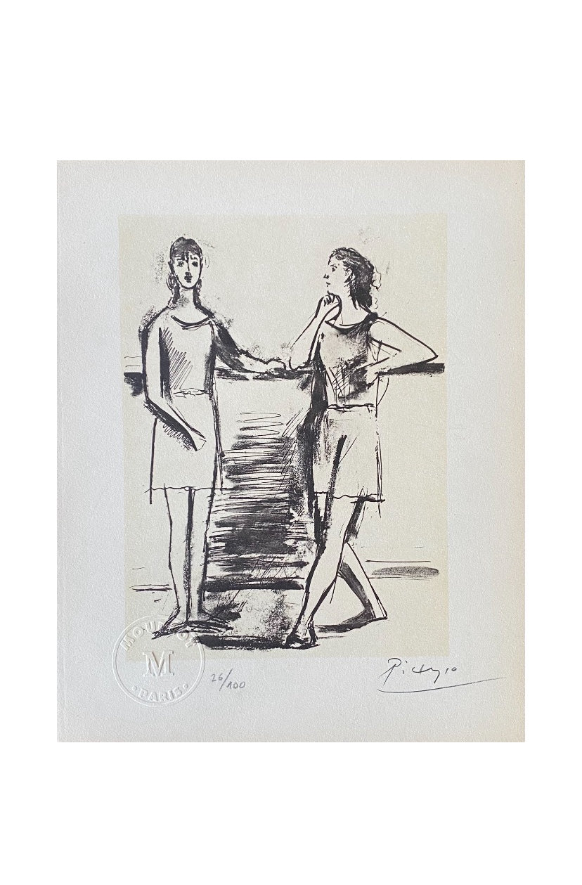 Pablo Picasso, Lithograph “ Two Female Dancers “ on Sur Vêlin D'Arches with Mourlot embossed seal from " Picasso Dessins" 1926, Publisher “ Editions des Quatre Chemins “ , Paris.