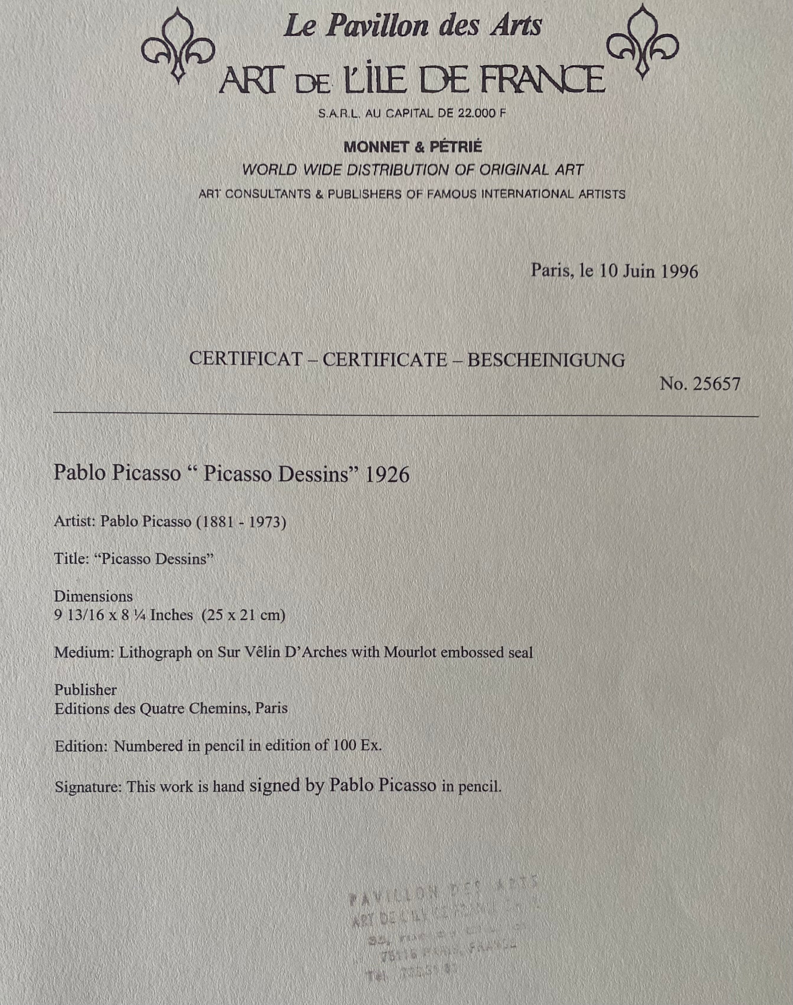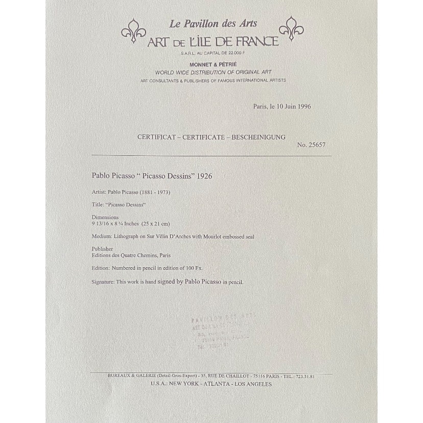 “Picasso Dessins" 1926, Publisher “ Editions des Quatre Chemins “ , Paris. Engelmann Imprimeur-Lithographe, Paris Edition 100 exemplar
