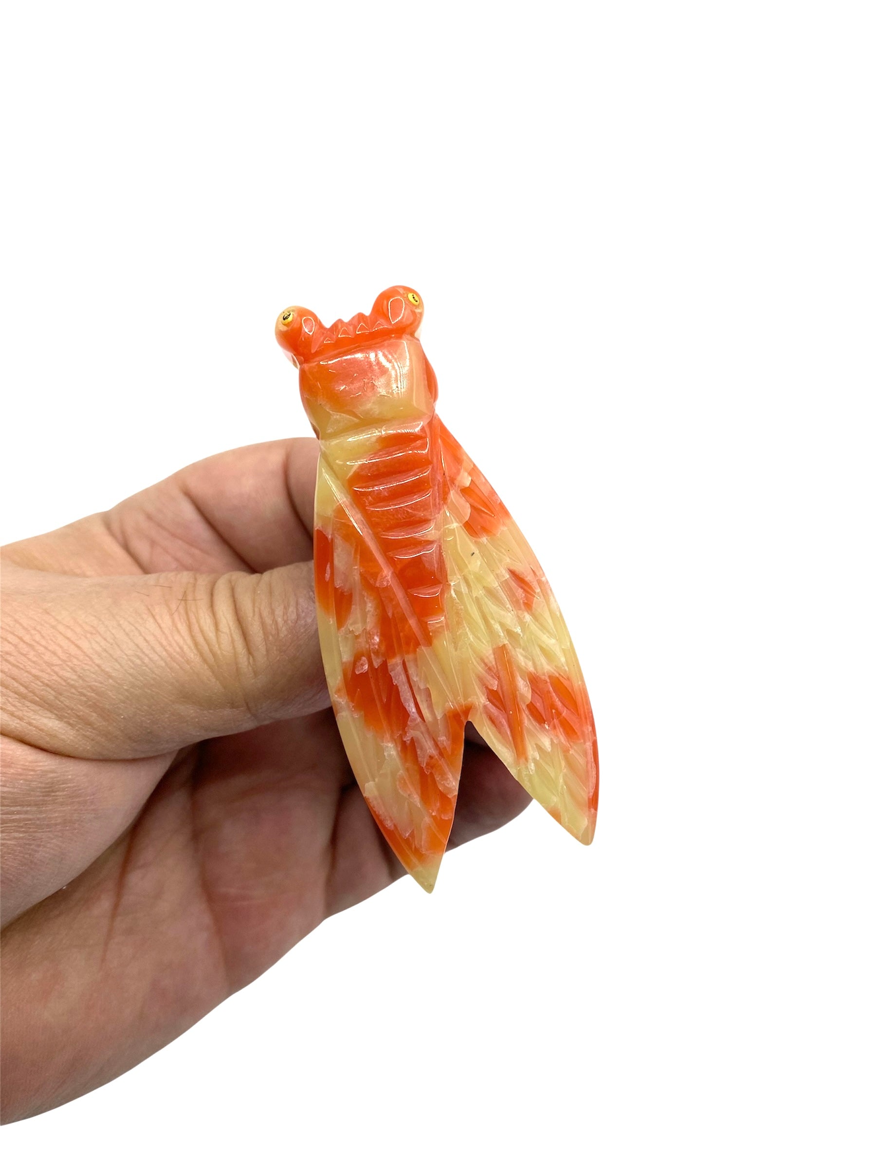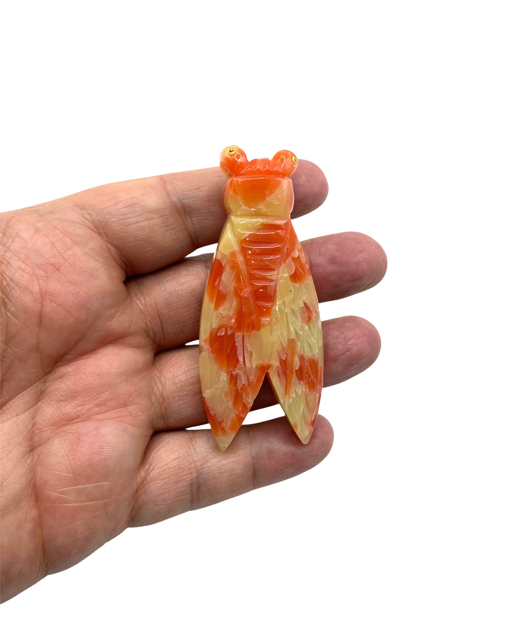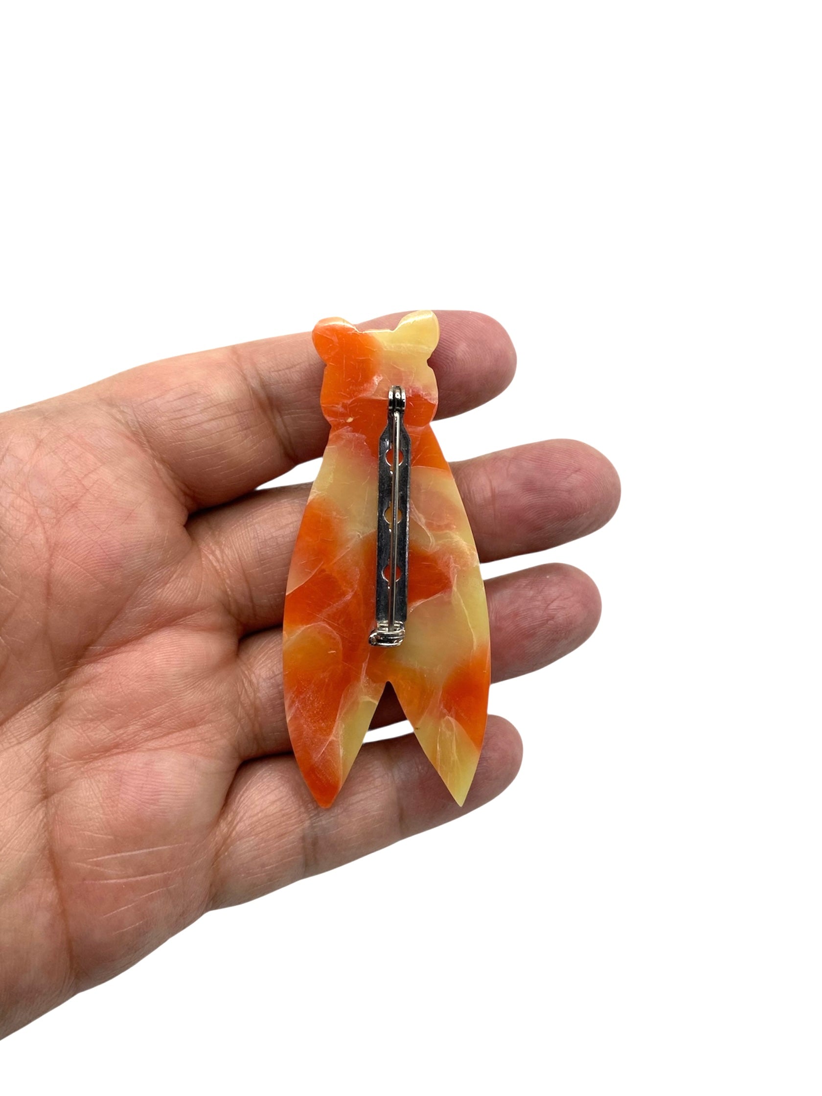 Rare, Antique 1920s, Art Deco Bakelite Cicada Insect Brooch Pin. Made in France , yellow and orange color.