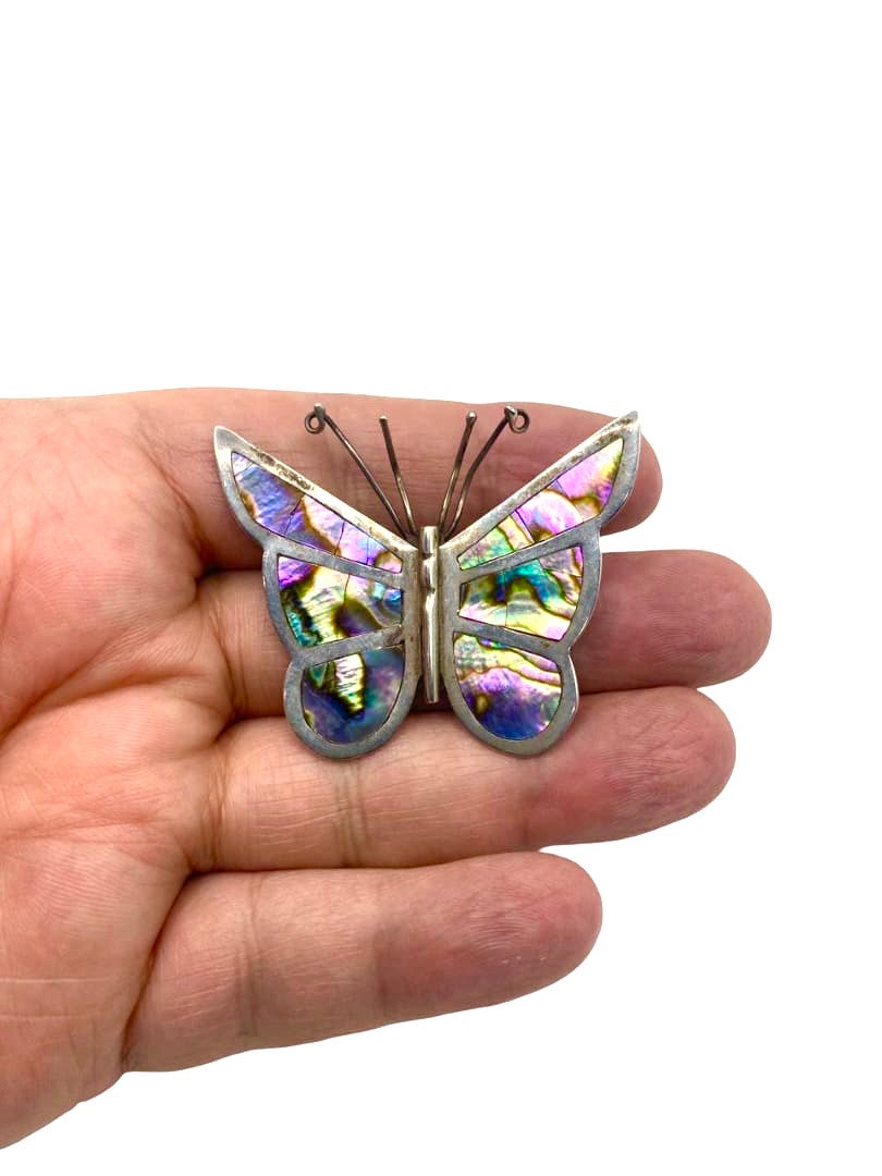 Vintage, LOS BALLESTEROS sterling silver abalone butterfly brooch
