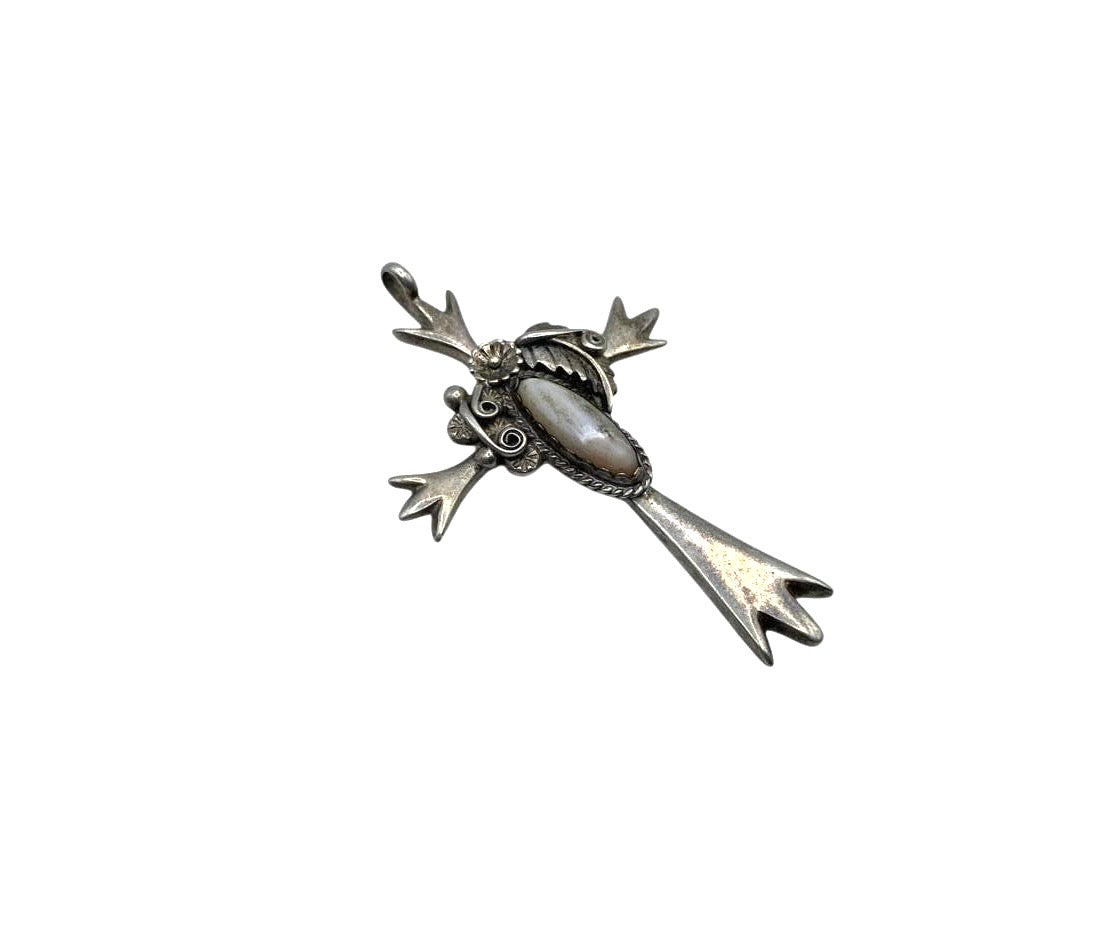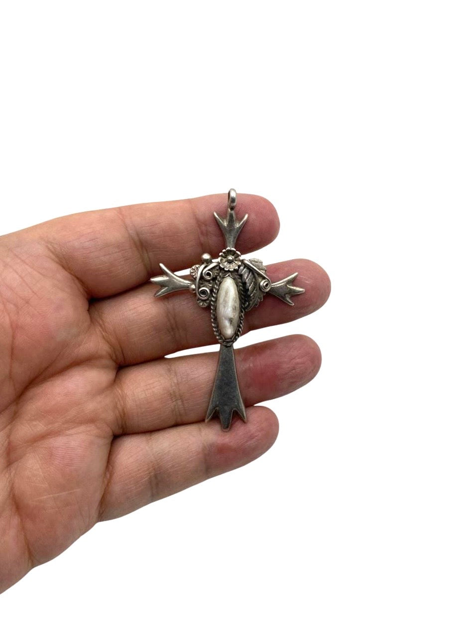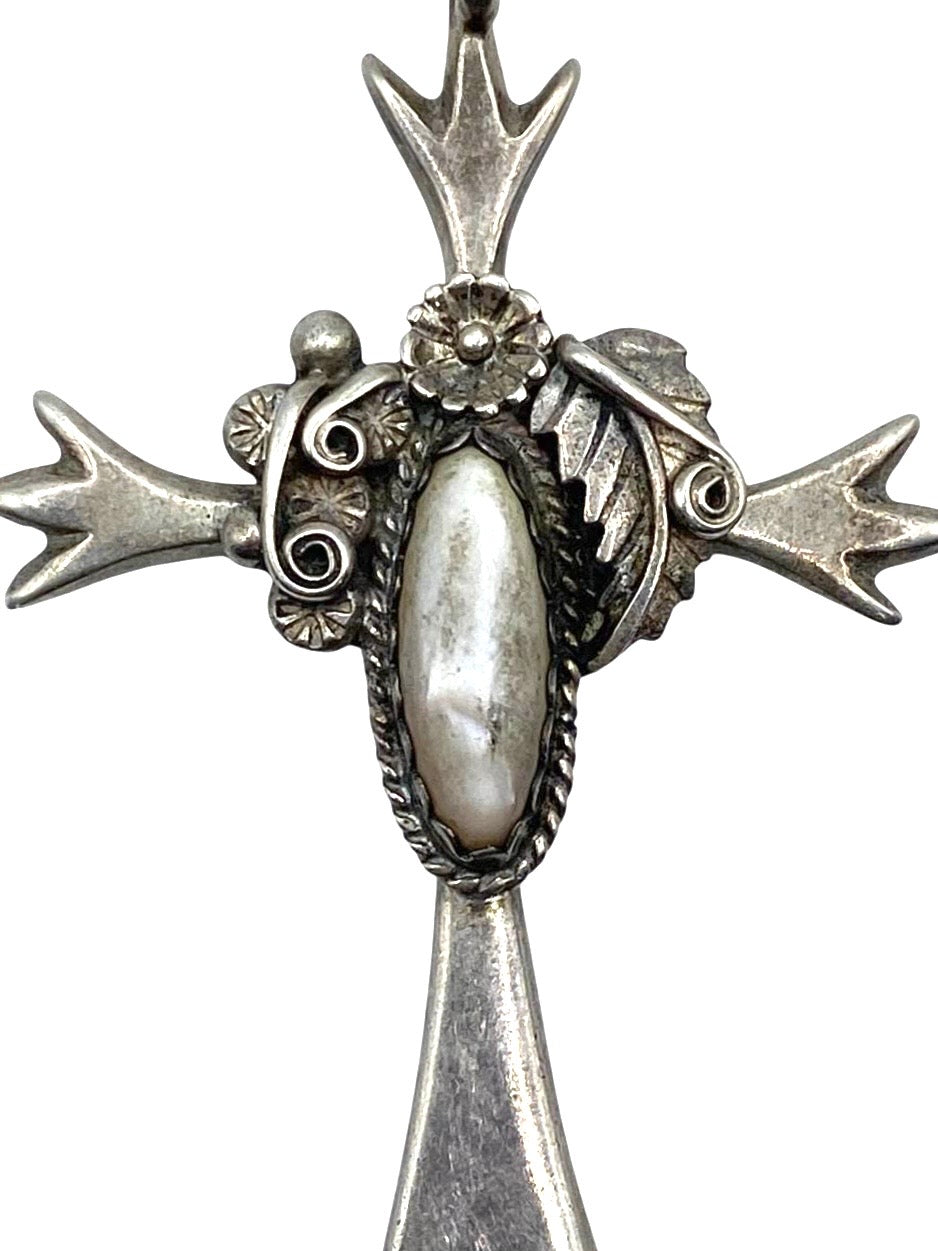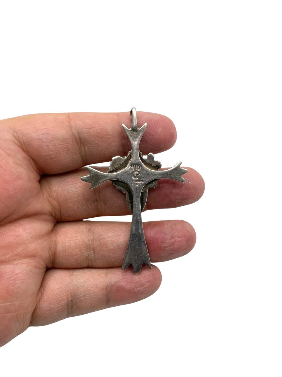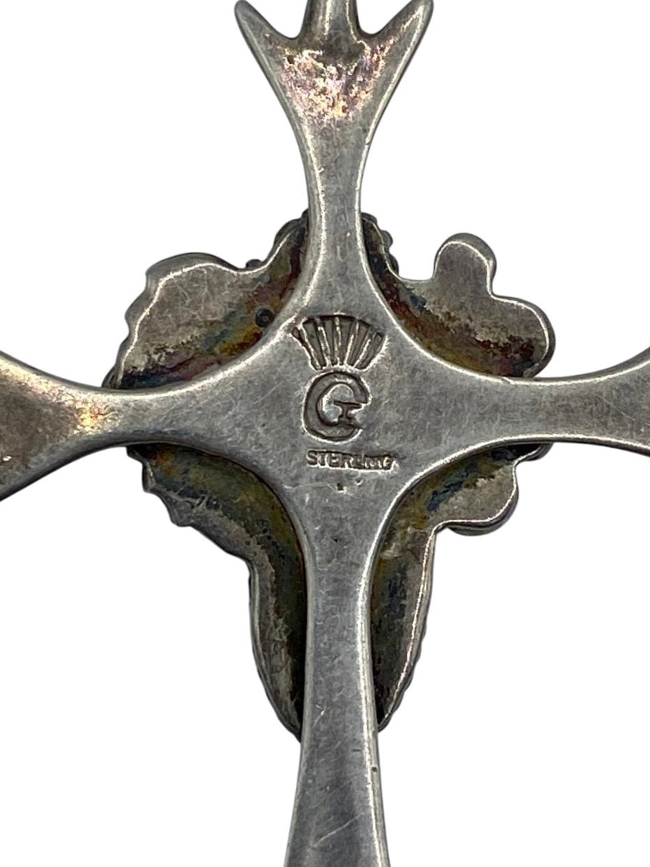 Vintage Mid-Century Mexican Sterling Silver & Gemstone Cross Pendant