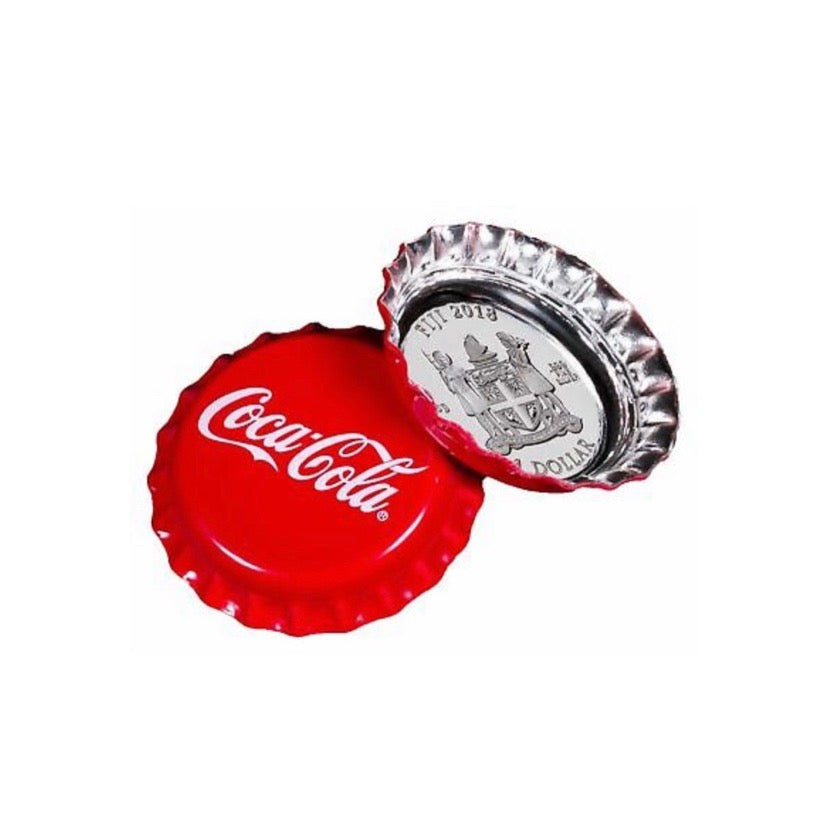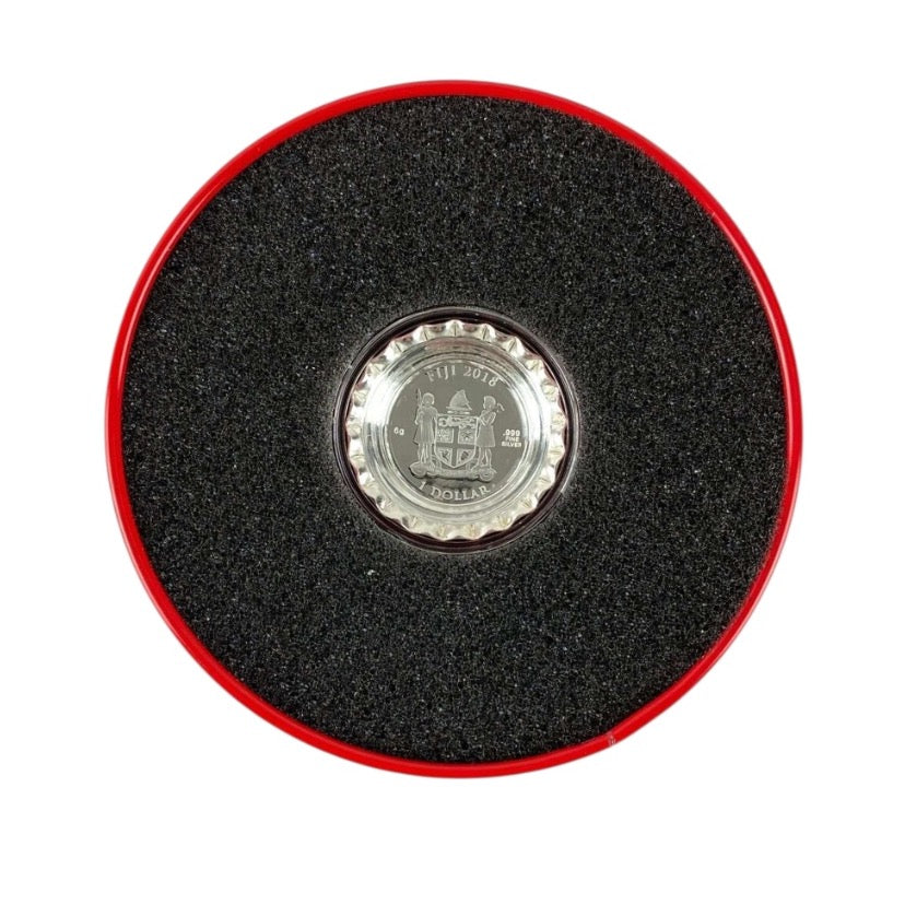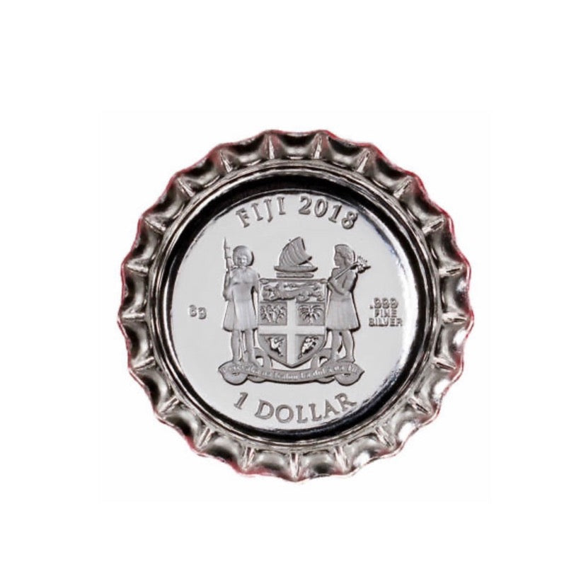 2018 Fiji Coke Coca-Cola Bottle Cap-Shaped 6g Silver Color Proof $1 Coin Proof