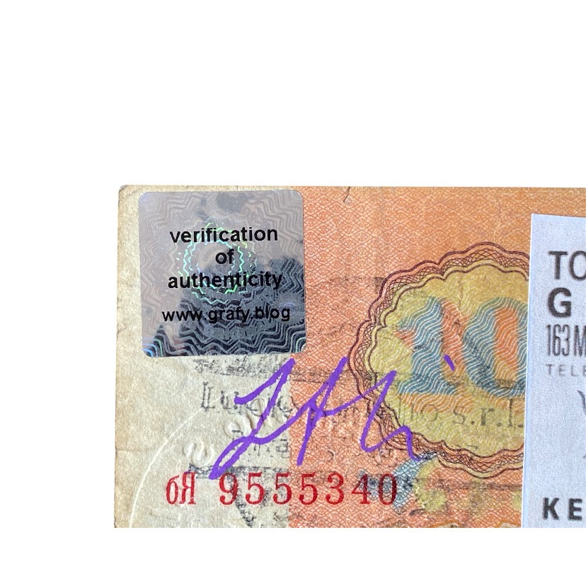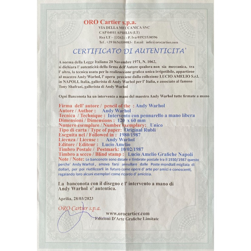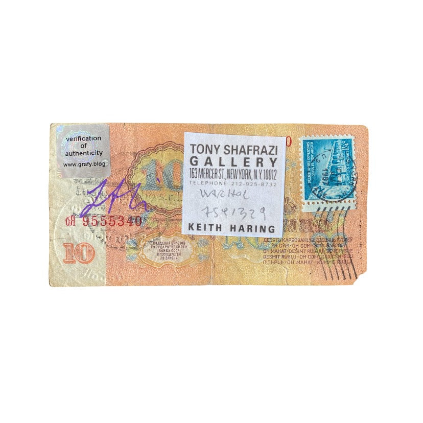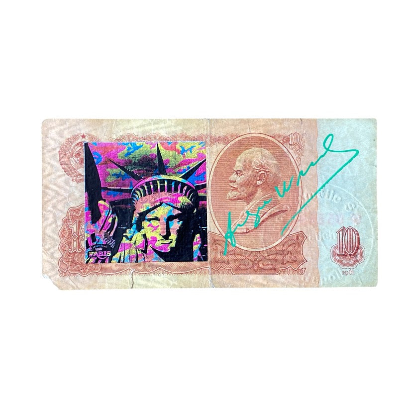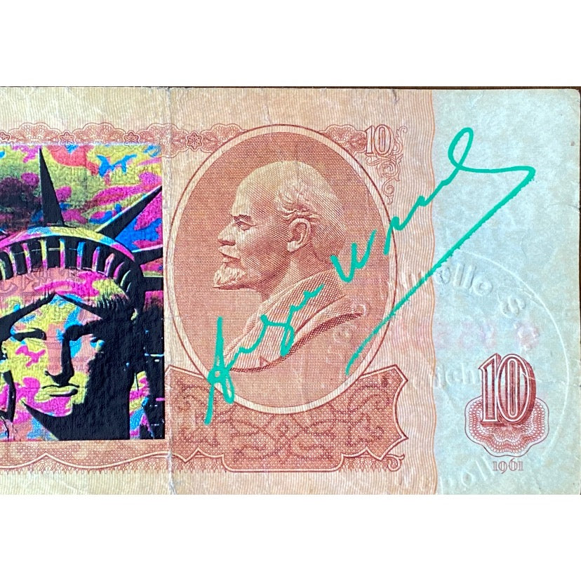 Andy Warhol , 10 Russian Ruble , hand signed by Andy Warhol With the seal and signature of Tony Shafrazy Gallery and the authenticity seal of Grafy.