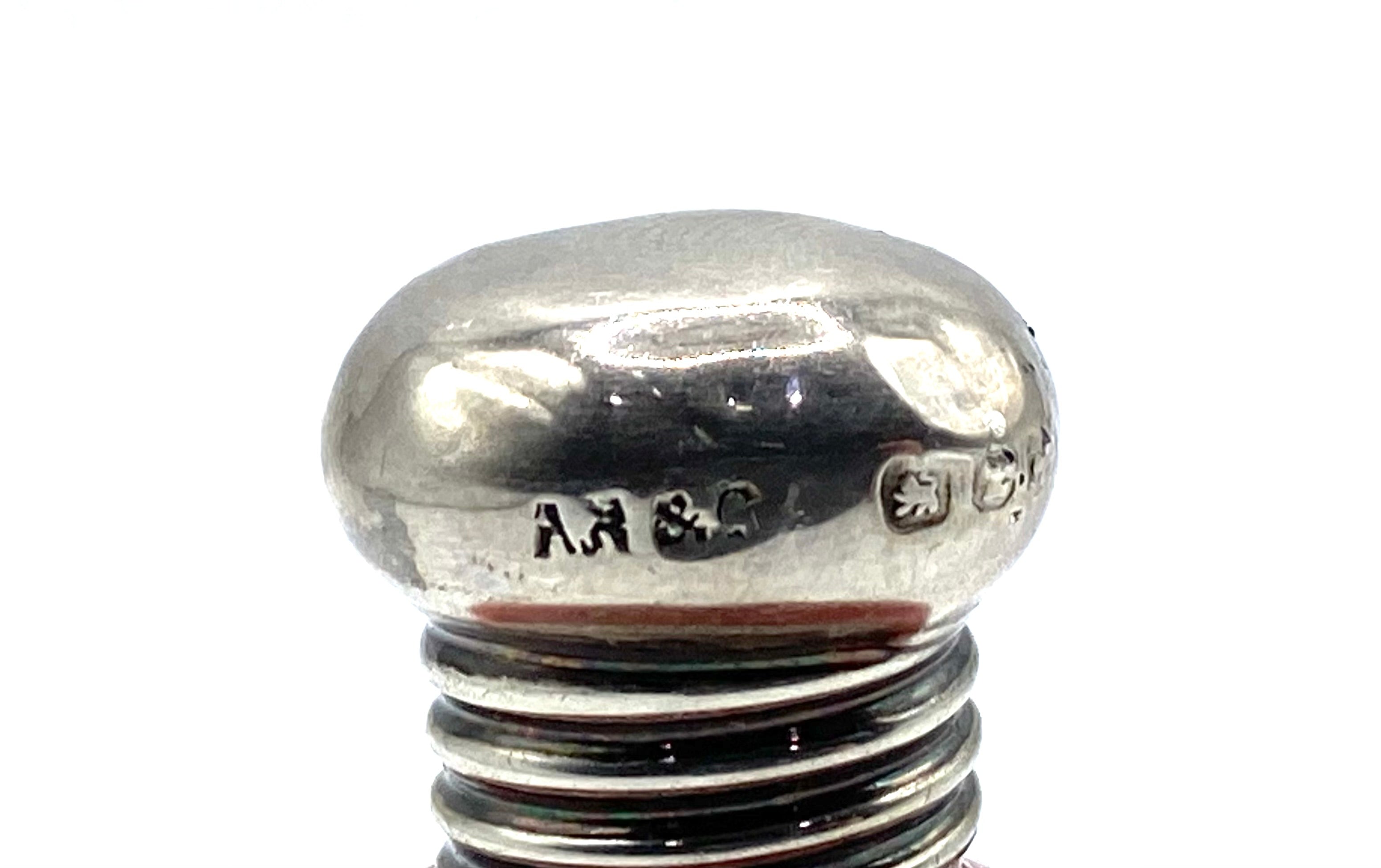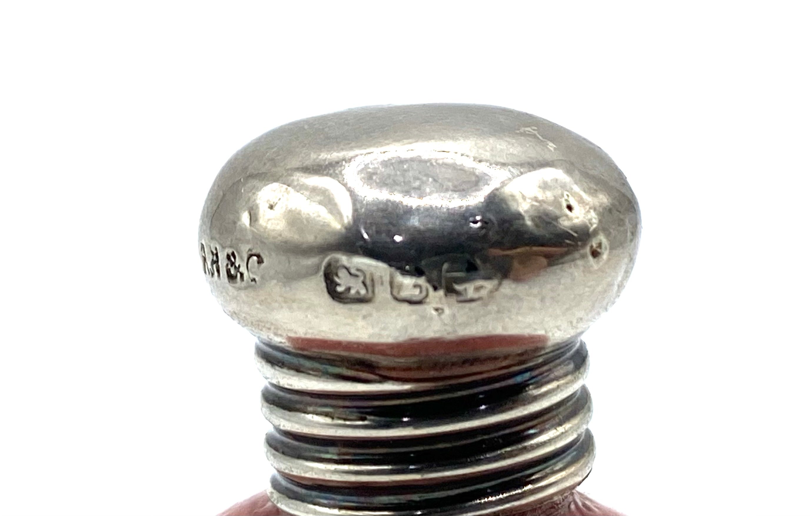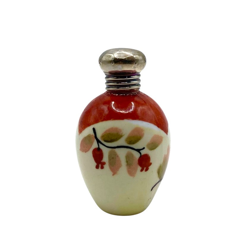 Antique ceramic miniature scent / perfume bottle with silver mount hallmarked Birmingham  1899 maker A B & Co.