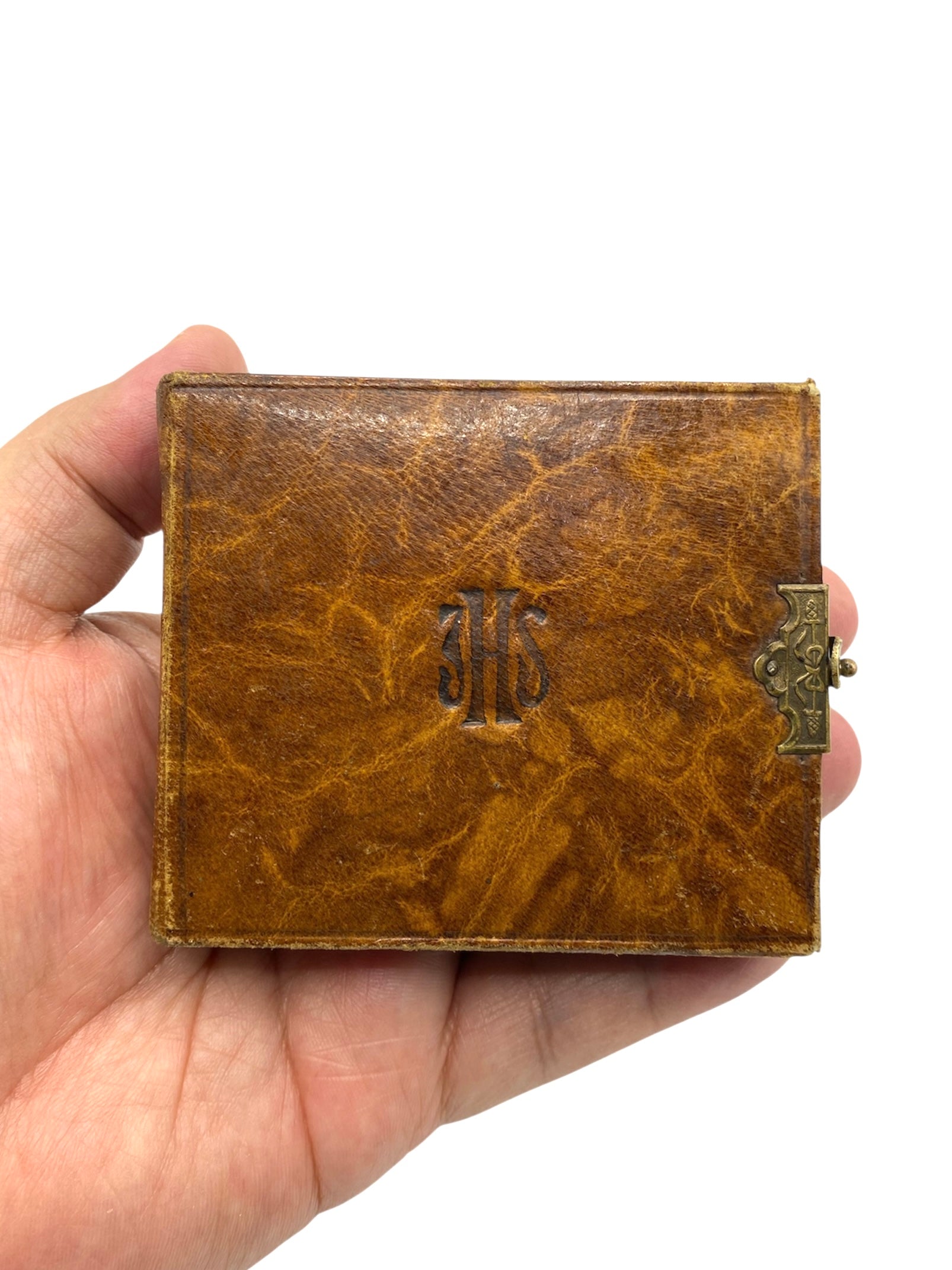 Antique chemin de croix. French Stations of the Cross, leather bound book, 1860-1890.