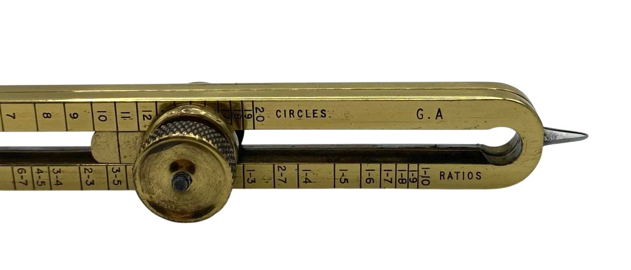 - Four scales engraved to the brass frame for Circles, Lines, Plans and Solids