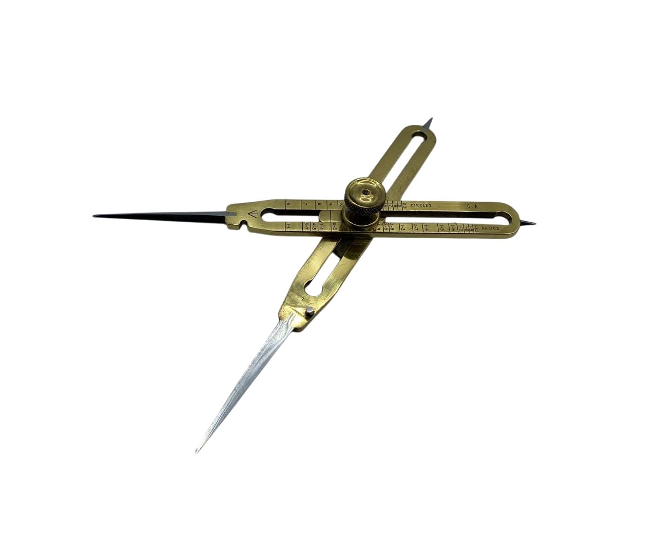 Antique G.A. Ulbrich ZURICH Brass Drafting Tool Proportional Divider Compass Scientific Instrument with Case.