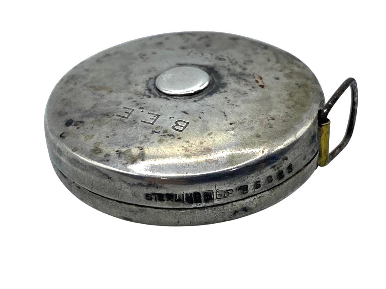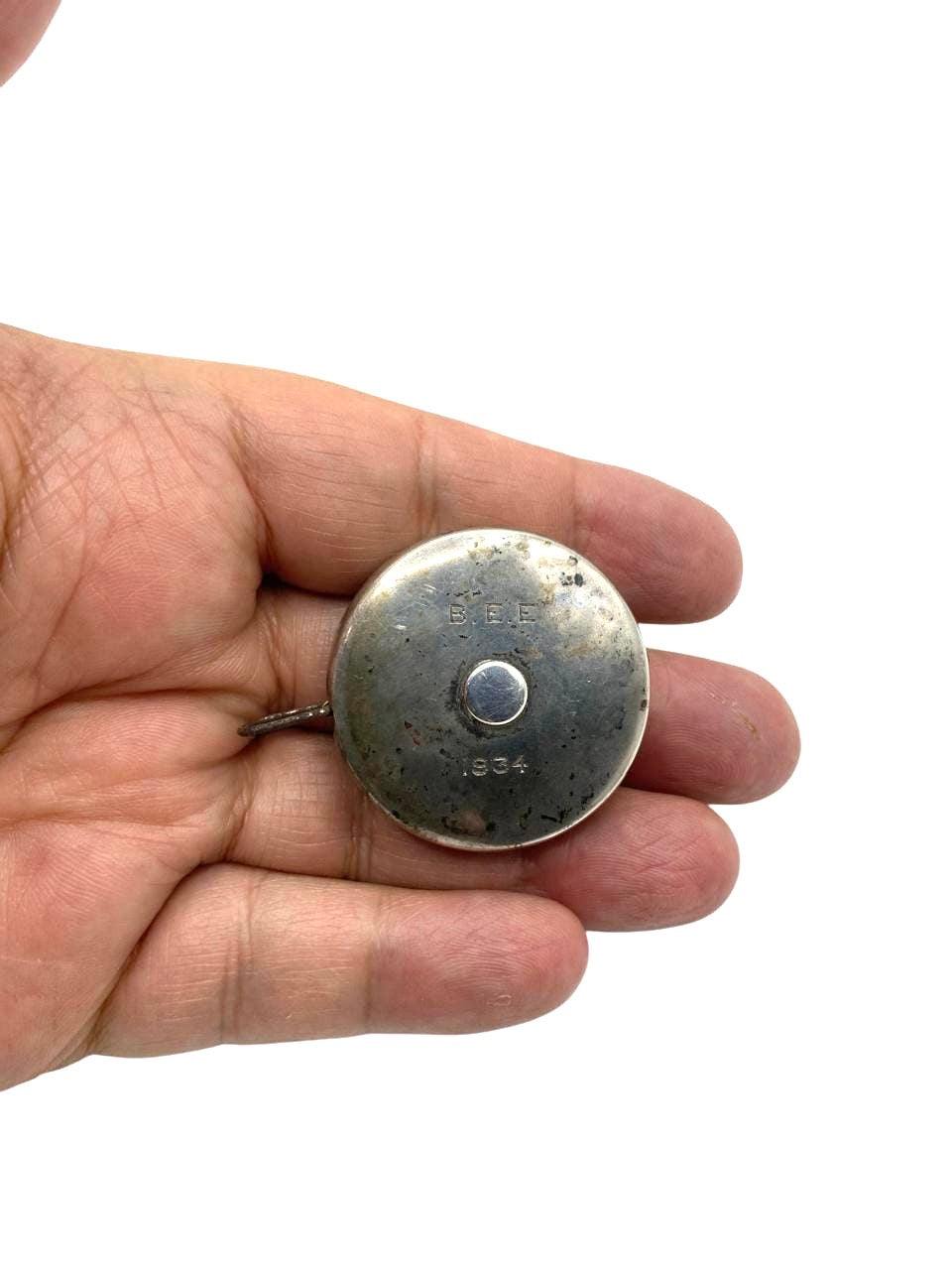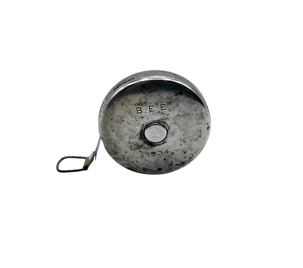 Antique, Sterling Silver pocket tape measure. marked B.E.E. 1934